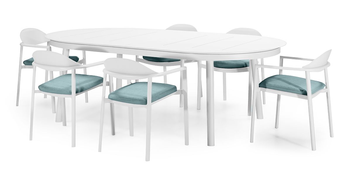 Lukahome.hu » supplies / Kert bútor / Marinelli kerti garnitúra, 230-300 cm-es kihúzható asztal + 6 szék, alumínium, fehér