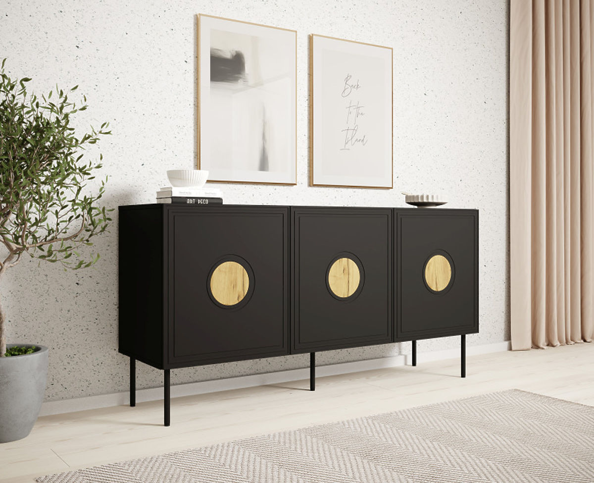 Fekete matt és tölgy craft komód 150 cm szélességgel. .. többet