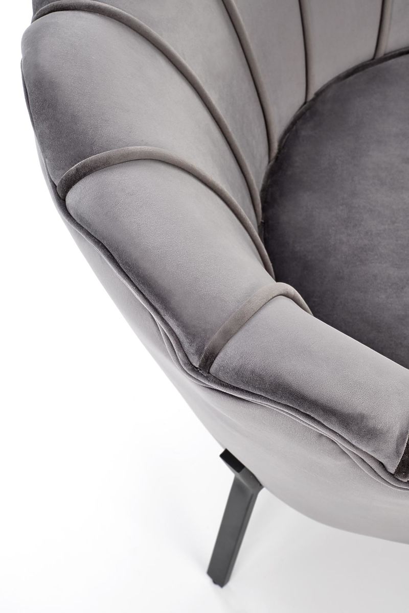 Szürke bársony relaxációs fotel fekete lábakkal. .. többet