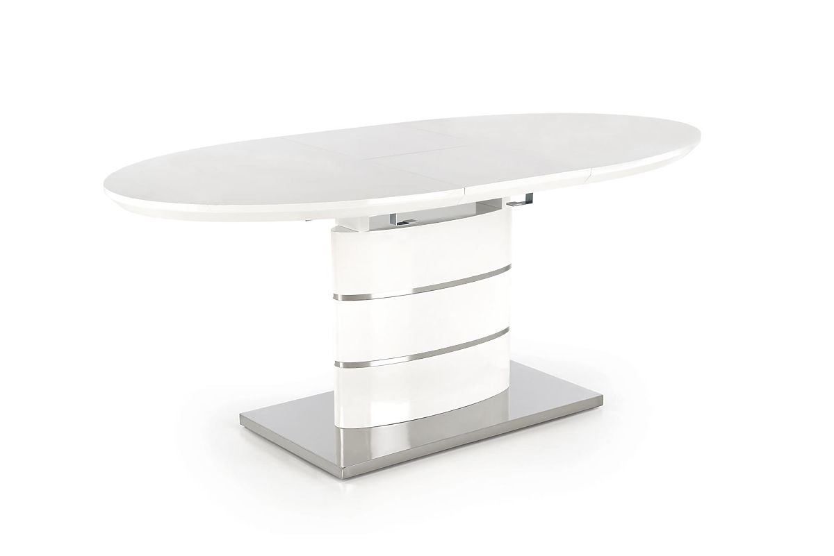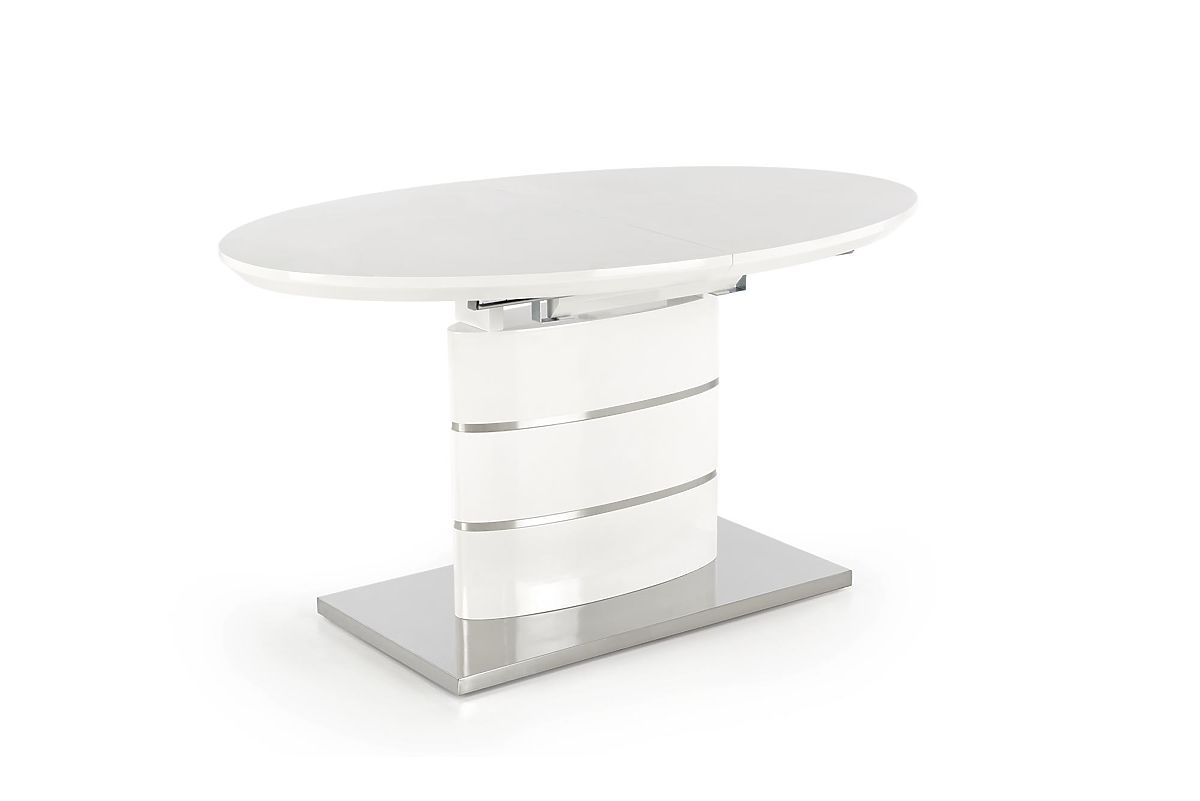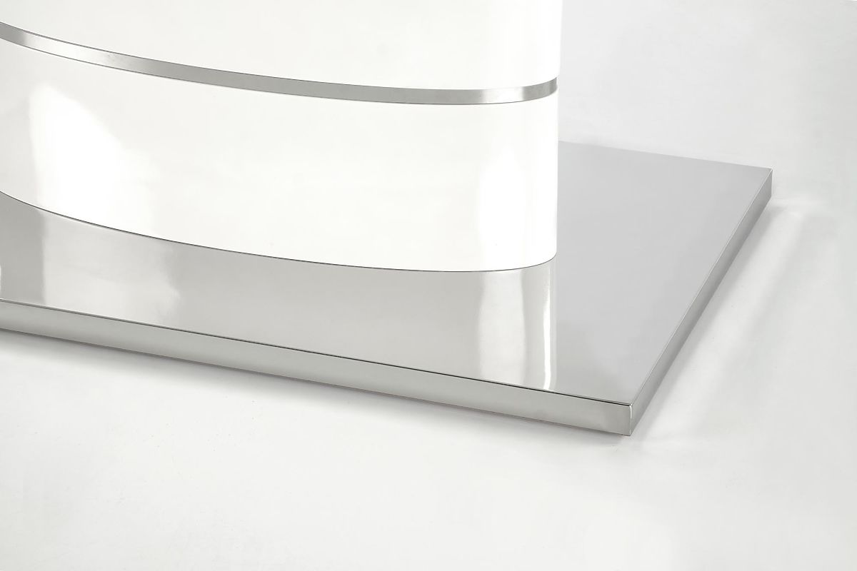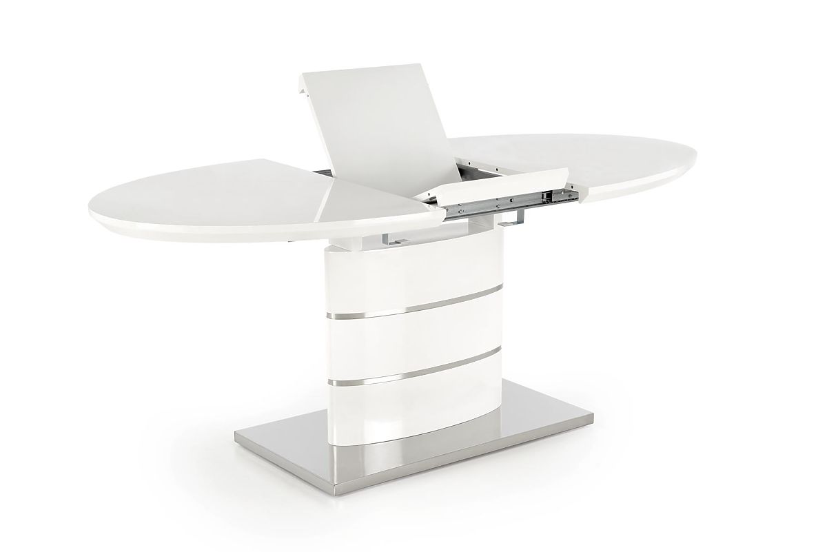 Kihúzható fehér asztal lakkozott MDF-ből és rozsdamentes acélból. .. többet