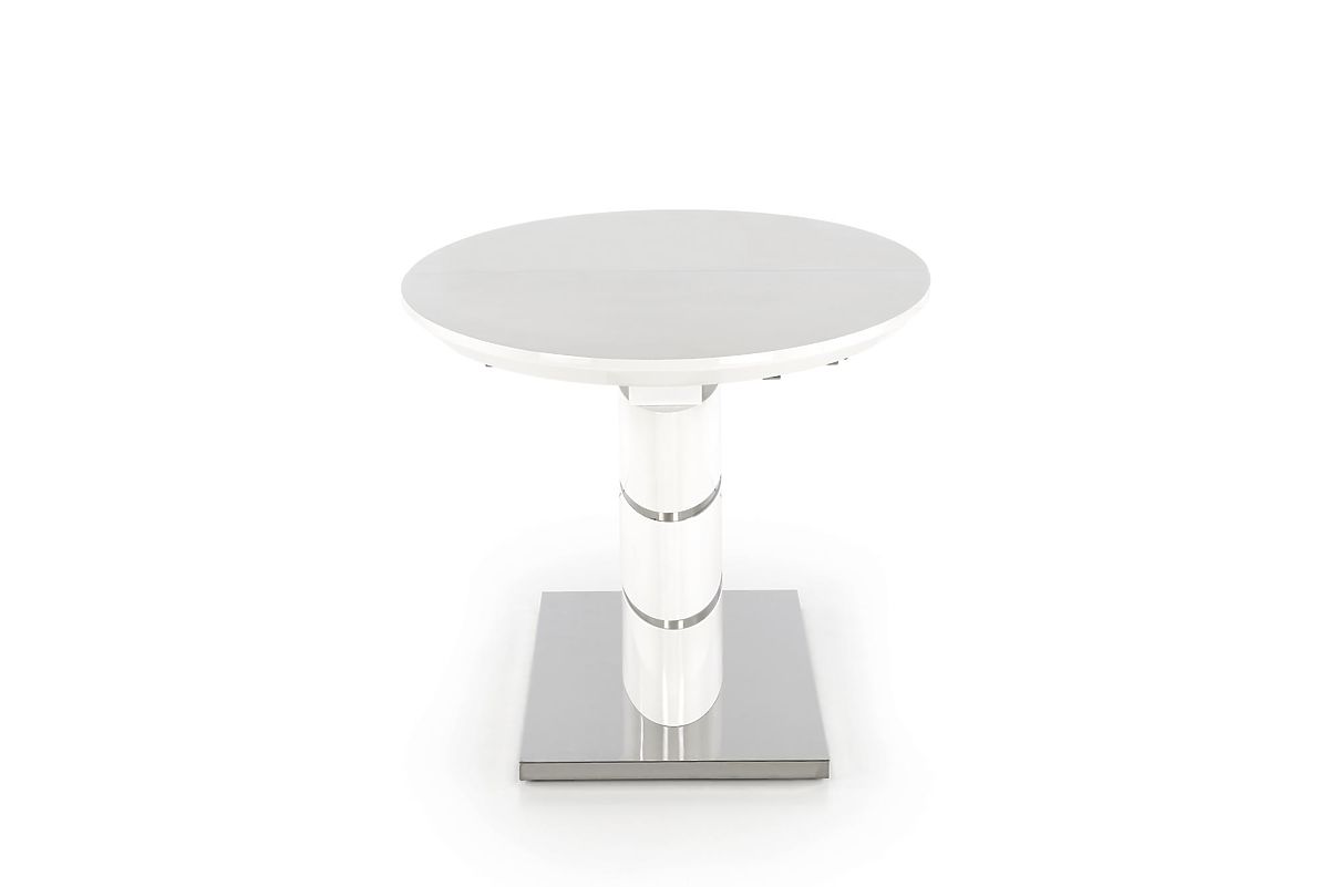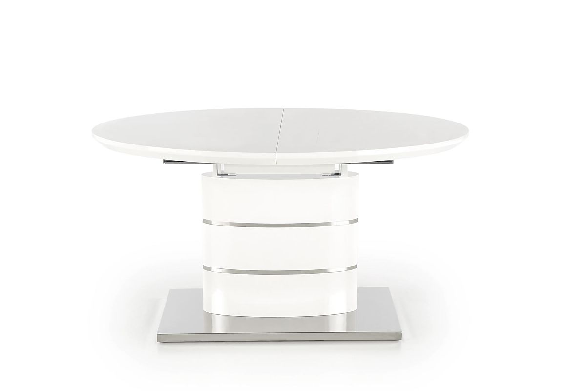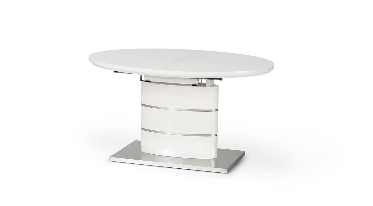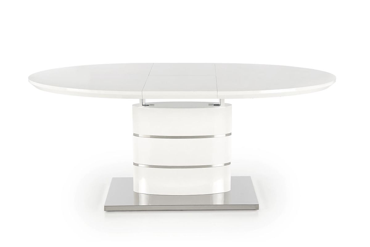 Kihúzható fehér asztal lakkozott MDF-ből és rozsdamentes acélból. .. többet