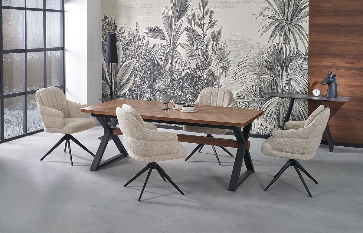 Kihúzható asztal dió színű lappal és fekete lábakkal. .. többet