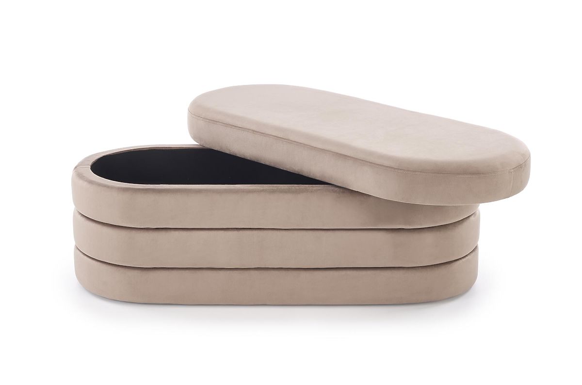 méretek: 110/46/42 cm, pad tárolóhellyel, anyag: szövet - bársony, szín: bézs