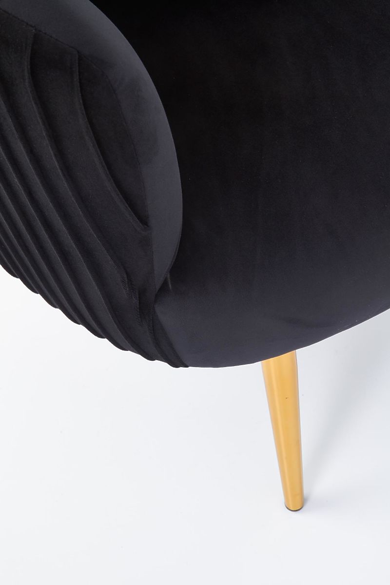 Fekete és arany relaxációs fotel szövetből és krómozott acélból. .. többet