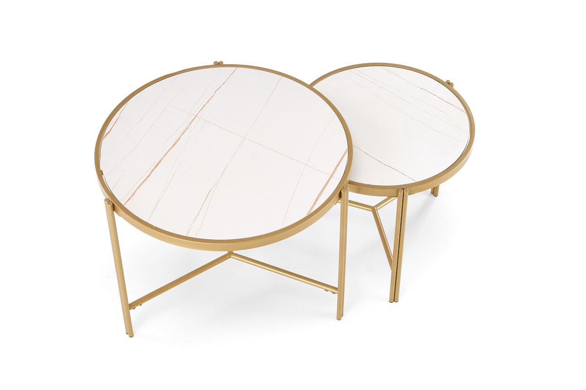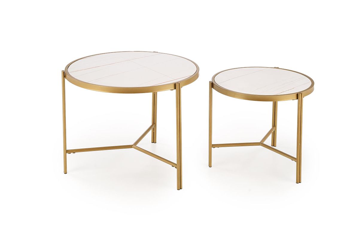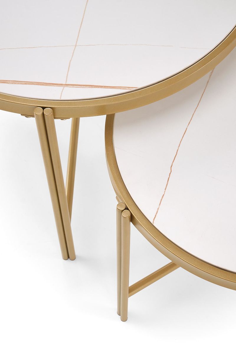 Lukahome.hu » Asztalok és dohányzóasztalok / Dohányzóasztalok / FATIMA 2 asztal szett, fehér márvány / arany (1p=1db)