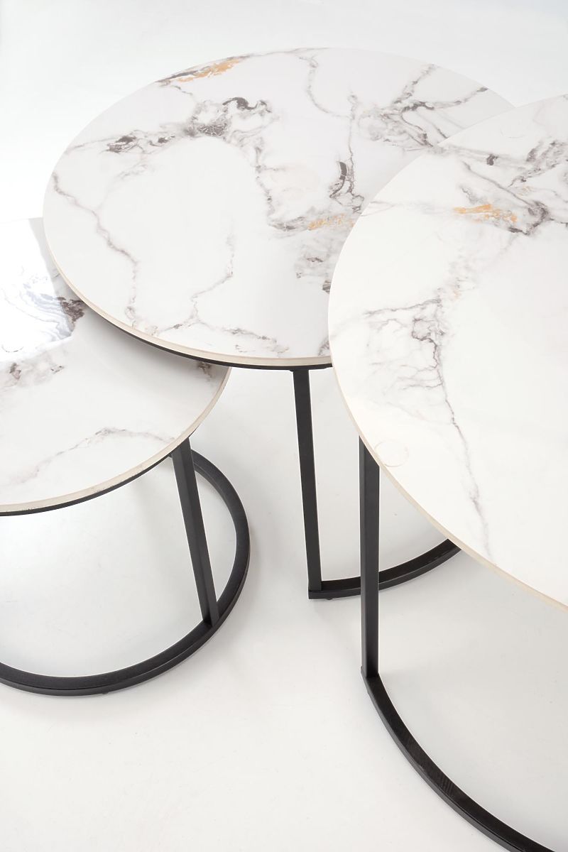 Lukahome.hu » Asztalok és dohányzóasztalok / Dohányzóasztalok / GILDA 3 asztal szett, fehér márvány / fekete (1p=1készlet)