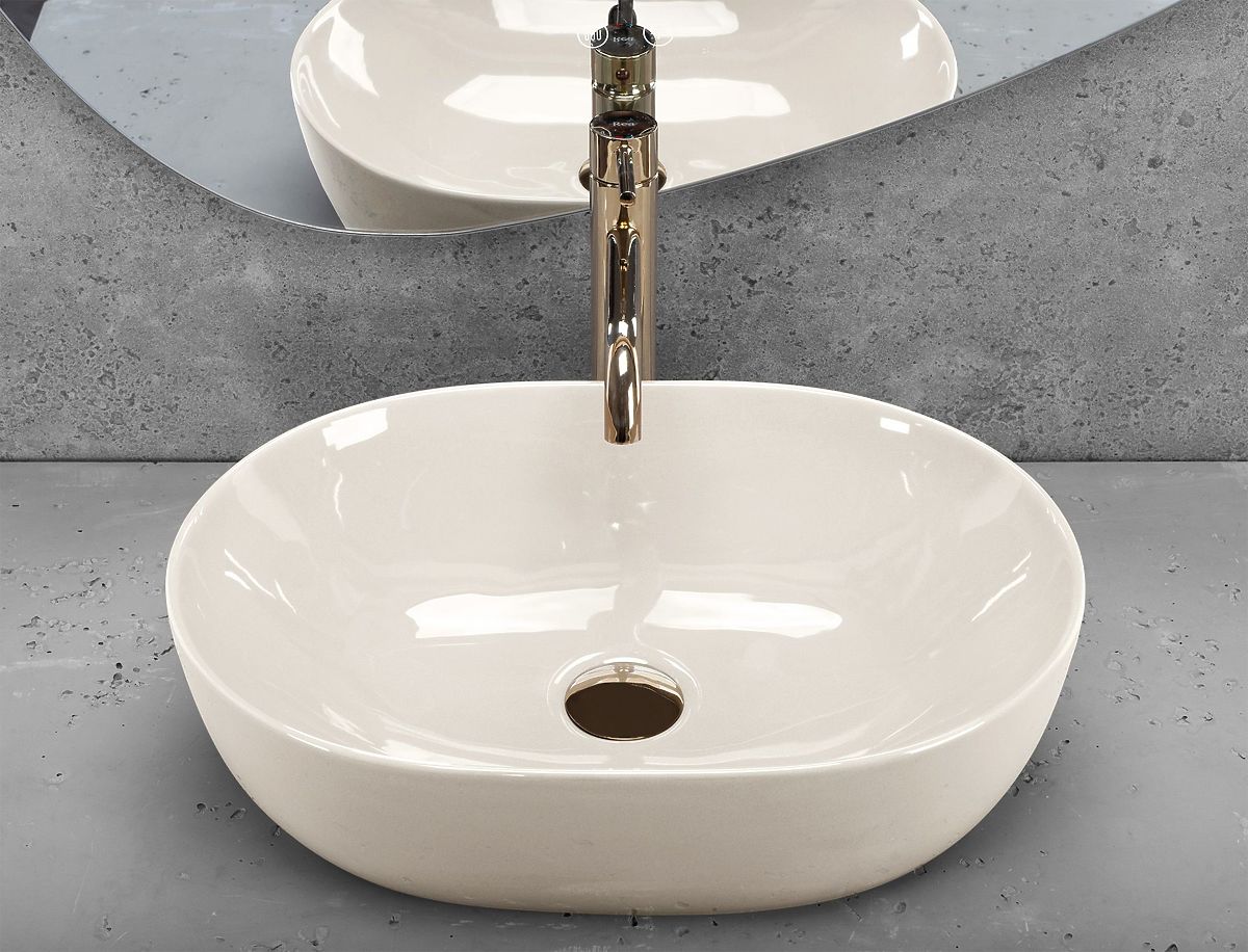 Kiváló minőségű szaniter kerámiából készült, a mosdó tartósságával és könnyű karbantartásával tűnik ki, ami kényelmes és hosszú távú használatot biztosít. A modell pult- vagy szekrényre szerelhető, ami lehetővé teszi a fürdőszoba tér maximális kihasználását, és elegáns, minimalista kompozíciót hoz létre.