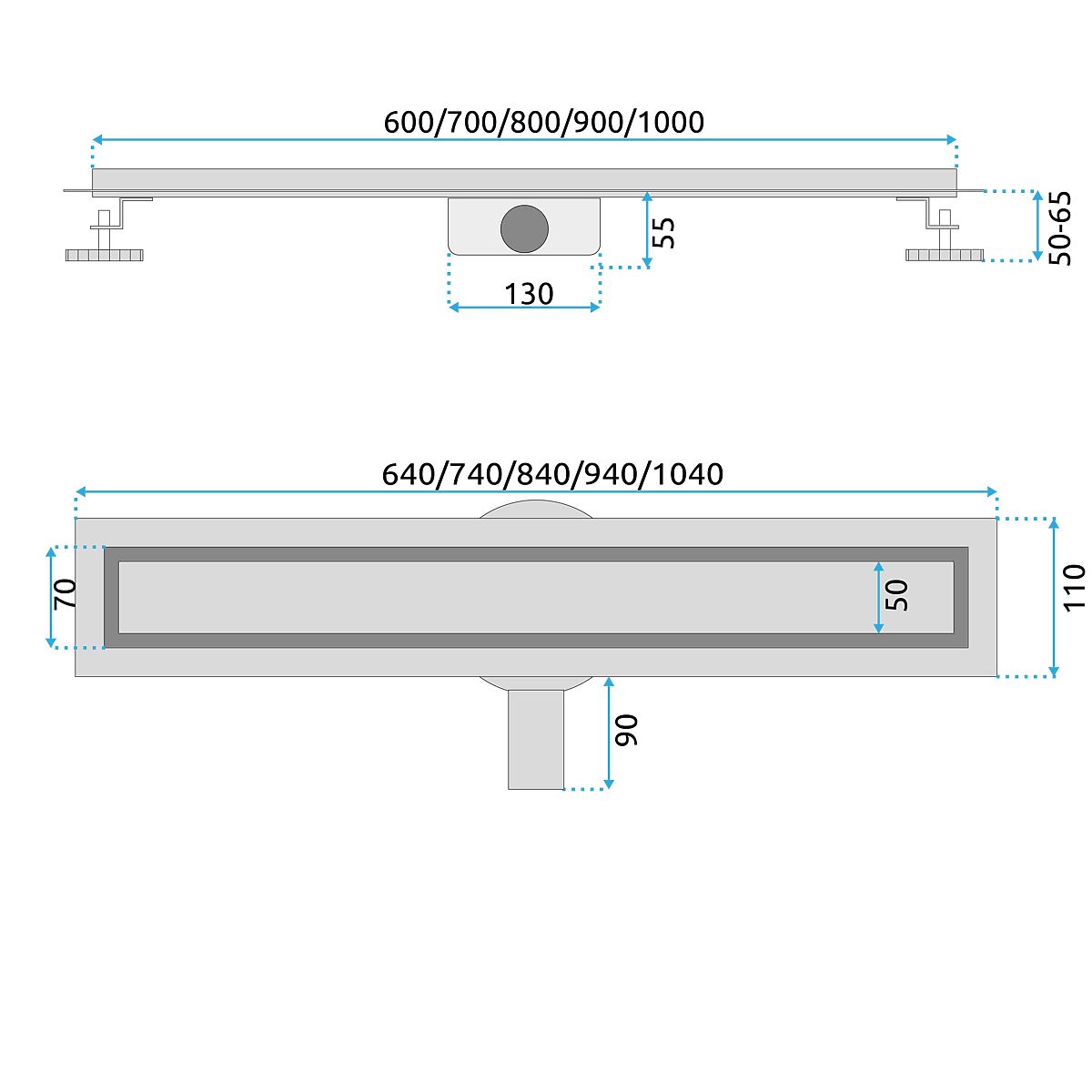 Tökéletesen kitölti a fürdőszobai teret, miközben megőrzi a belső tér hibátlan megjelenését és esztétikáját. A lefolyó a legjobb minőségű Aisi 304 rozsdamentes acélból készült. A lefolyó fedél kétoldalas, ami lehetővé teszi két felületkezelési változat - alumínium vagy beépített csempe - közötti választást, így minden fürdőszobához igazítható a felületkezelés típusa. A lineáris lefolyó száraz szifonnal van felszerelve.