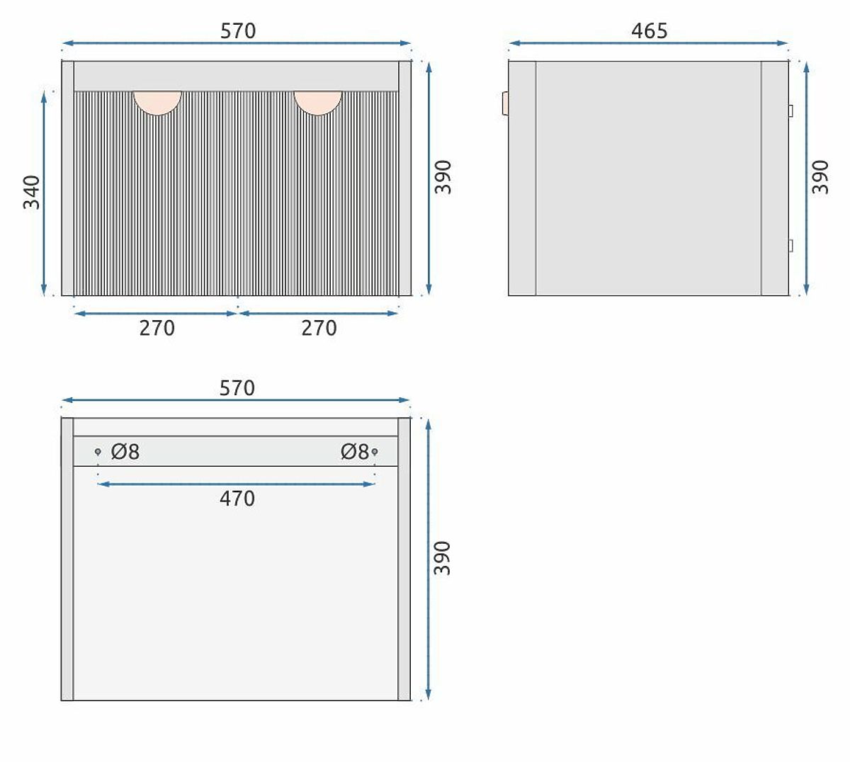 Mario 60 cm-es szürke fürdőszobabútor készlet mosdóval