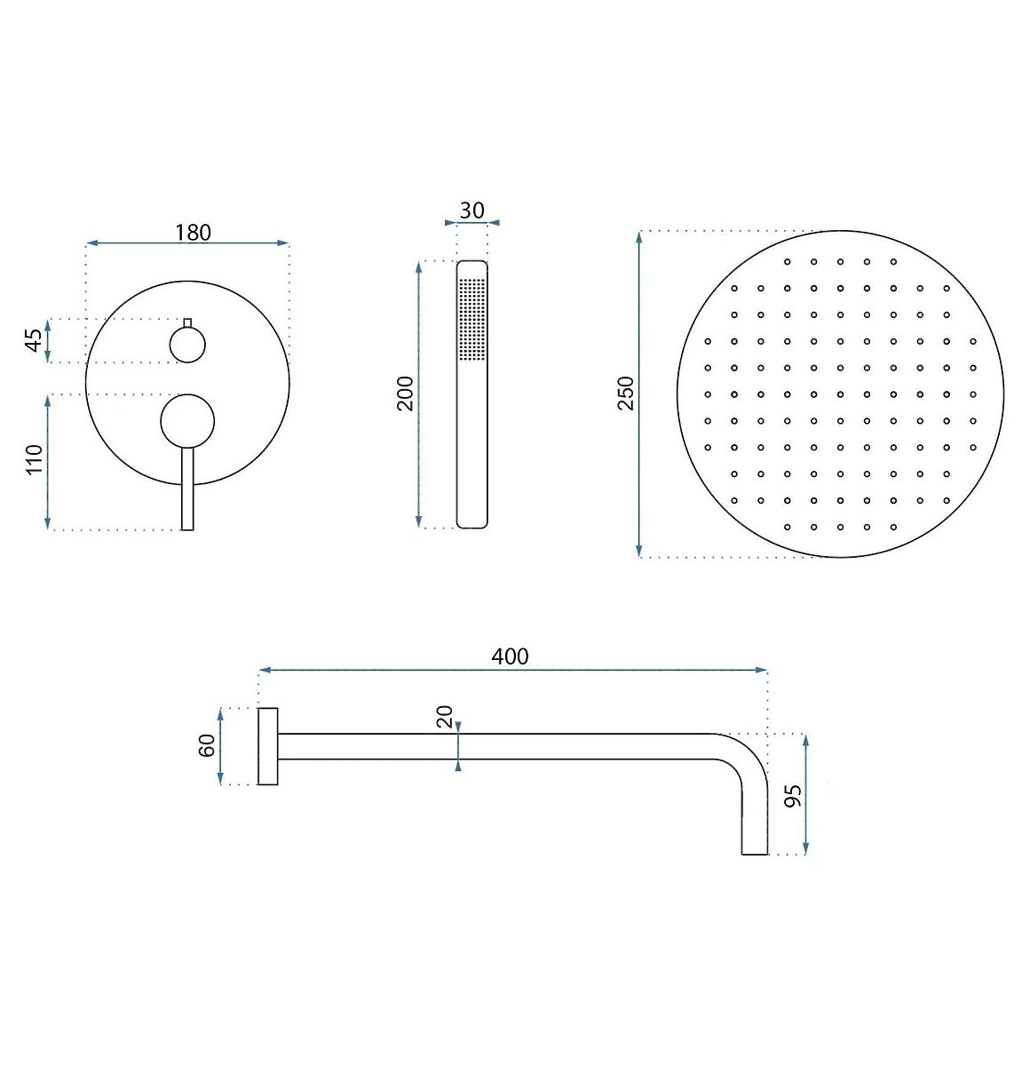 Arany színű, modern, minimalista beépíthető zuhanykészlet. .. többet