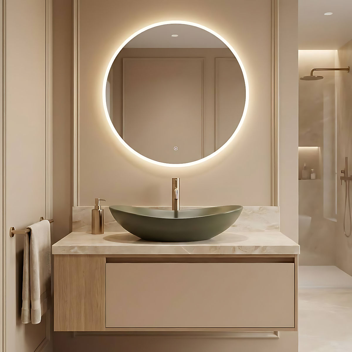 A Royal Olive Matt modell remekül illik modern elrendezésekhez, de klasszikus vagy retro fürdőszobákba is, ahol harmonikus és esztétikus teret teremt.