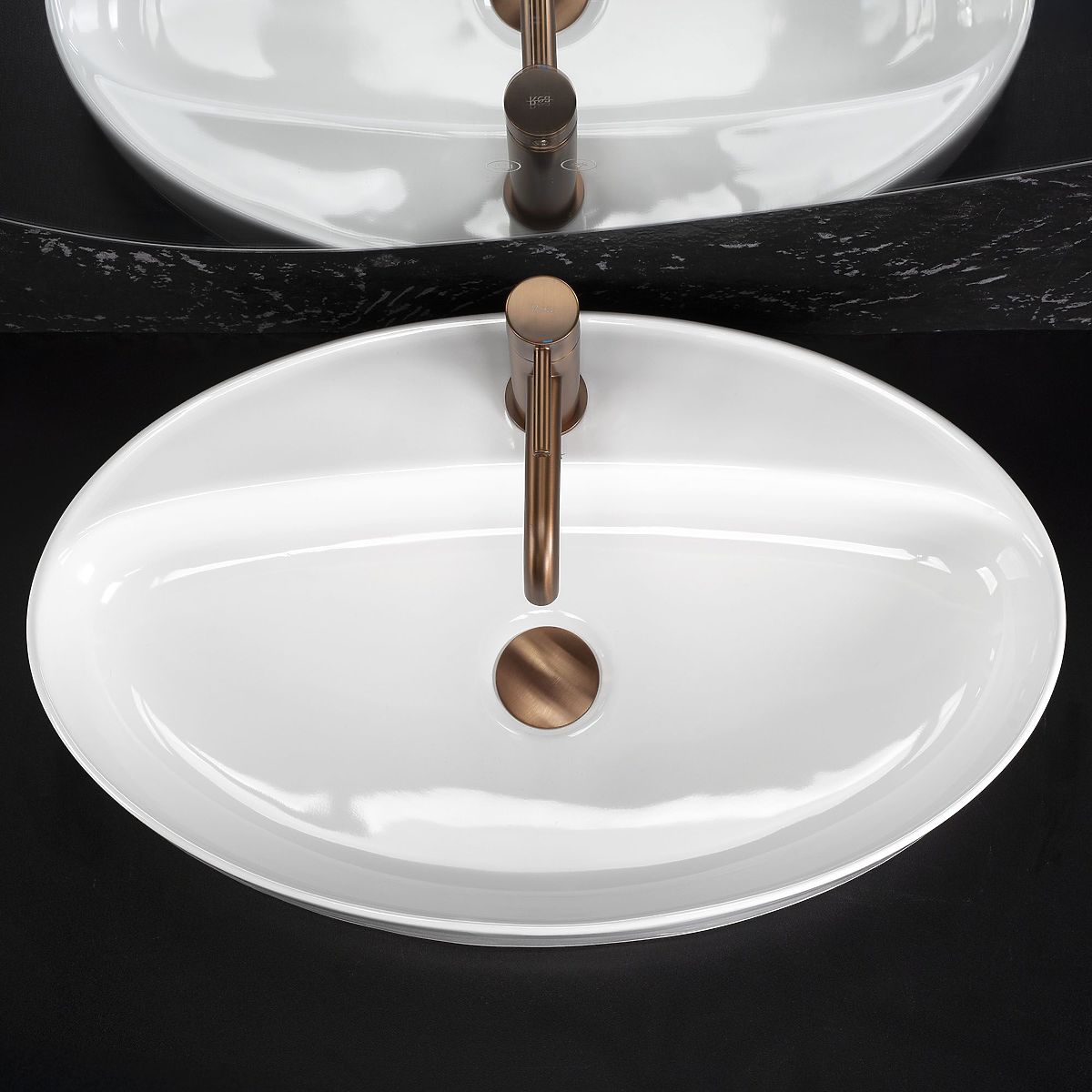 A mosdókagyló polccal rendelkezik, amelyen csaptelep számára kialakított nyílás található, így még funkcionálisabbá válik. Magas minőségű szaniter kerámiából készült, tartós, ellenáll a sérüléseknek és könnyen tisztán tartható. A pultba szerelés lehetővé teszi a fürdőszobai tér maximális kihasználását, miközben elegáns, minimalista kompozíciót hoz létre.