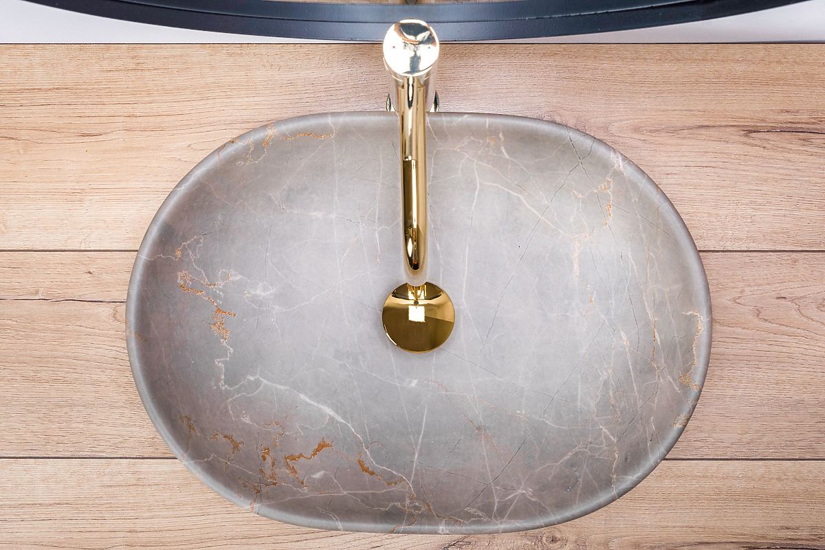 Gyönyörű, kőhatású mosdókagyló – Lara Stone. Az alkalmazott technikának köszönhetően minden darab egyedi és különleges mintázattal rendelkezik. Ez a hatás a természetes követ imitálja. A mosdókagyló pult- vagy szekrényre szerelésre van kialakítva. Magas minőségű szaniter kerámiából készült. A speciális gyártási fázisnak köszönhetően tartós és könnyen tisztán tartható.