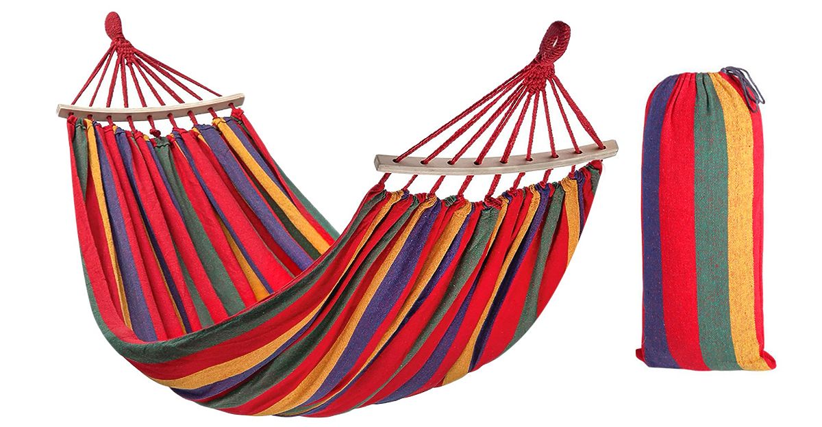 Egyszemélyes piros függőágy állítható rúddal. .. többet