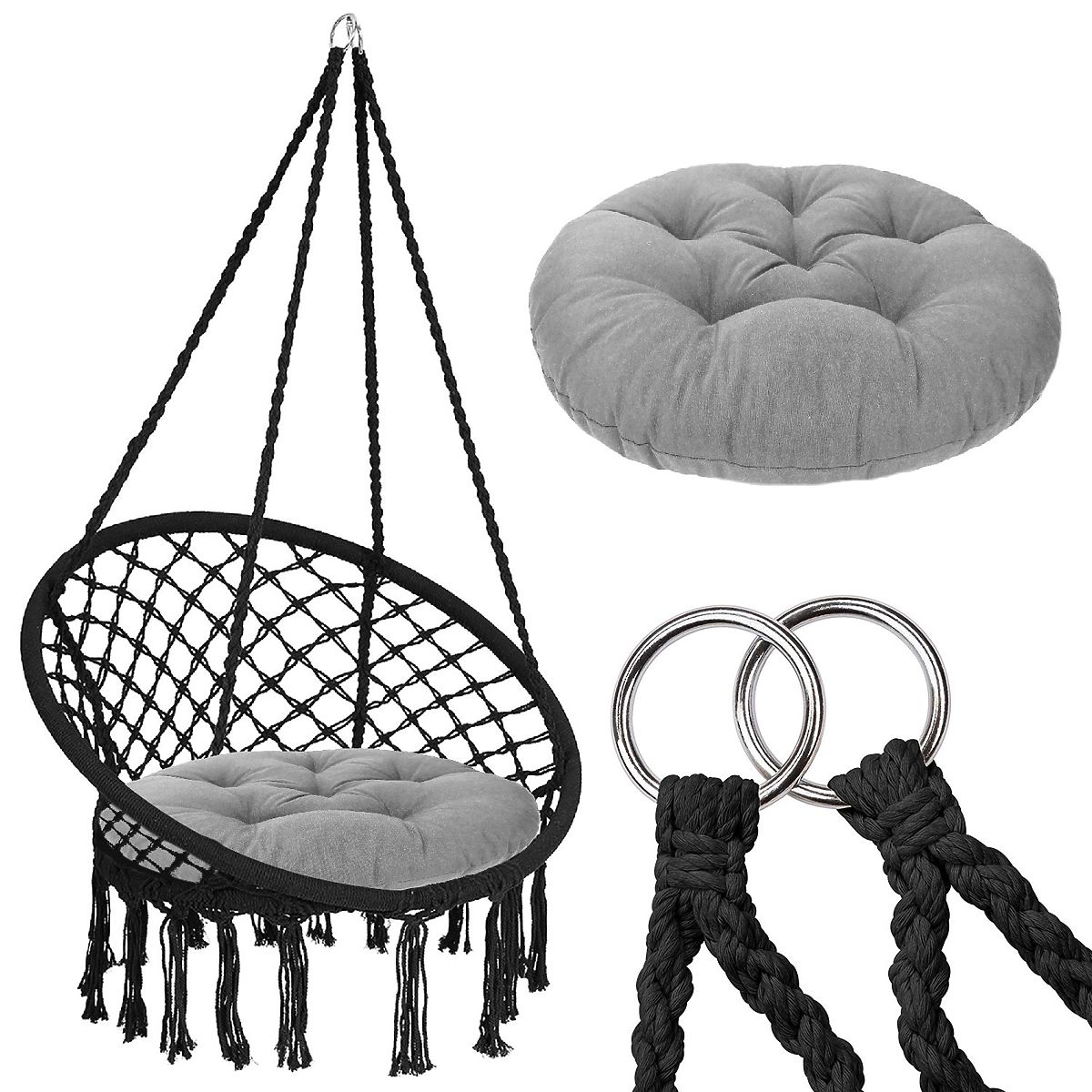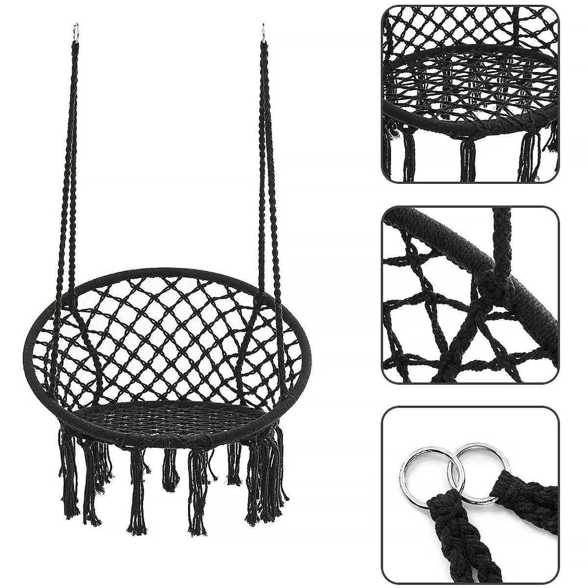 Nagyon kényelmes bútor, amely kellemesebbé teszi a pihenést a kertben, teraszon vagy otthoni környezetben. A hintát úgy tervezték, hogy az ülés a lehető legkényelmesebb legyen – a magas háttámla lehetővé teszi a kényelmes ülést vagy fekvést és pihenést. A kiváló minőségű boho stílusú függőhinta 2 fém karikából, puha párnákból és tartós kötélből készült, fonott formában. A háttámla 4 különálló kötéllel van felszerelve, amelyek lehetővé teszik az egy vagy két kampóra történő felfüggesztést.