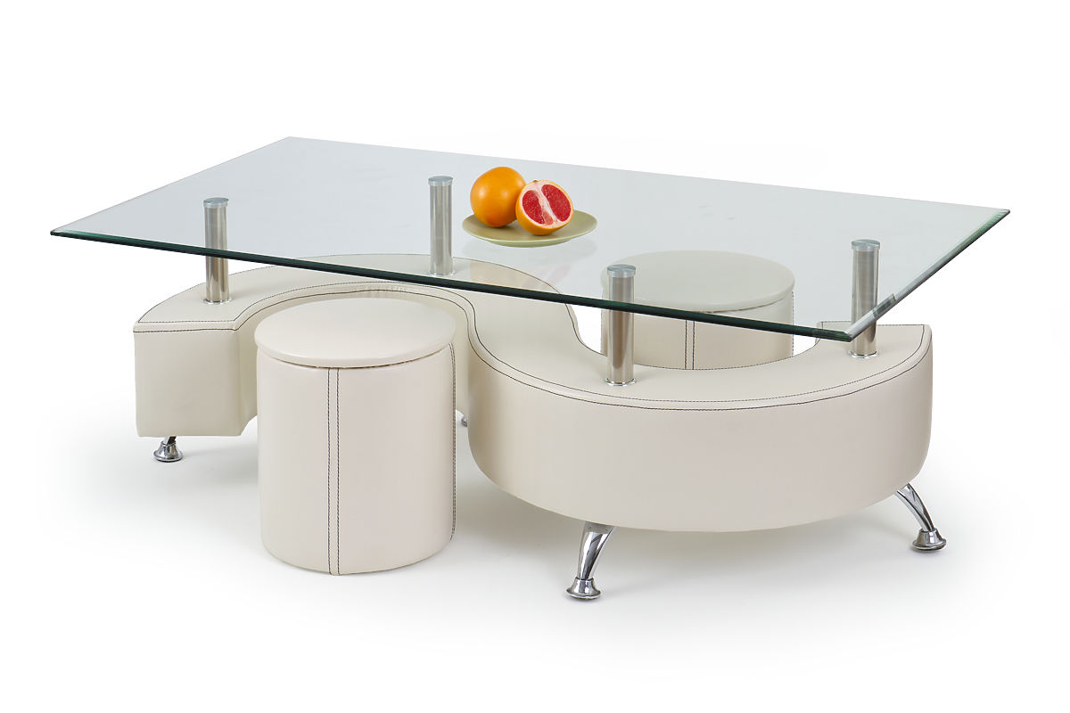 Válasszon nappalijába praktikus és stílusos megoldást a Halmar gyártó Nina 3 H konferenciaasztalával. Az eredeti formájú alap és a testreszabott puffok ideális helyet teremtenek a családdal és barátokkal töltött kellemes pillanatokhoz.