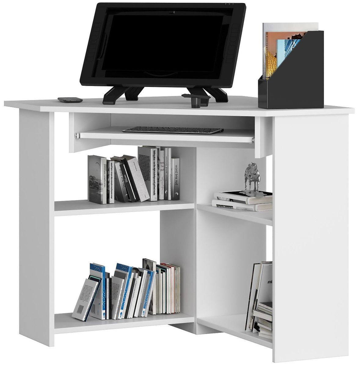 Otthoni munkavégzéshez kényelmet vár el? Új asztalra van szüksége, amely megfelel az igényeinek? Válassza azt a modellt, amely tökéletesen alkalmas asztali számítógép használatához. Üzletünkben elérhető egy példány, amely billentyűzet és a számítógép fő része számára is helyet biztosít. Ezenkívül a munkalap elegendő helyet kínál a monitor, jegyzetfüzet, füzetek vagy tollak kényelmes elhelyezéséhez. A sarok számítógépasztal sok helyet takarít meg a szobában vagy irodában. Számíthat a magas tartósságra, amelyet a 16 mm-es laminált lap biztosít, amelyből készült. A lap kopásálló, ami növeli az egész szerkezet élettartamát, és megjelenése hosszú ideig új marad.