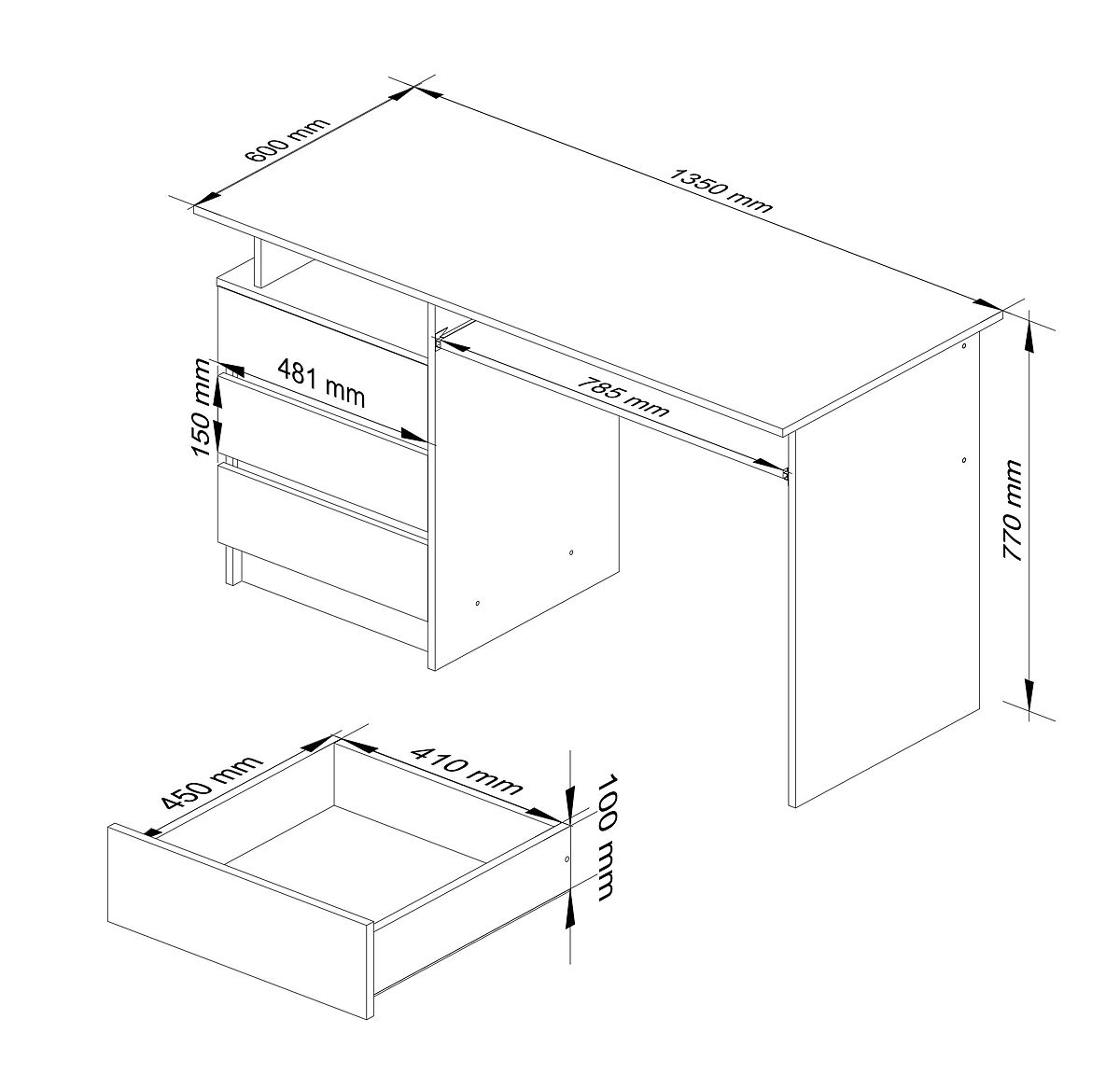 - Szabadon álló asztal! Az asztal hátsó része laminált lapból készült, ami lehetővé teszi a bútor bárhol történő elhelyezését, falhoz helyezés nélkül.