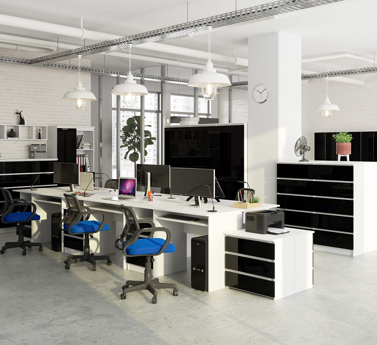 CLP íróasztal fekete-fehér színkombinációval és praktikus tárolókkal. .. többet