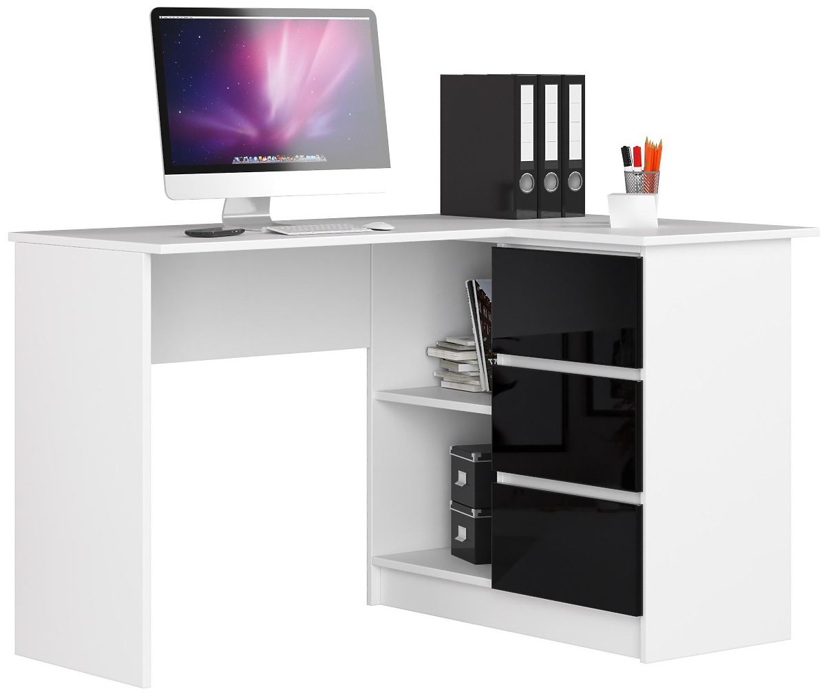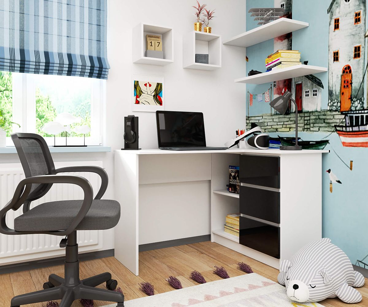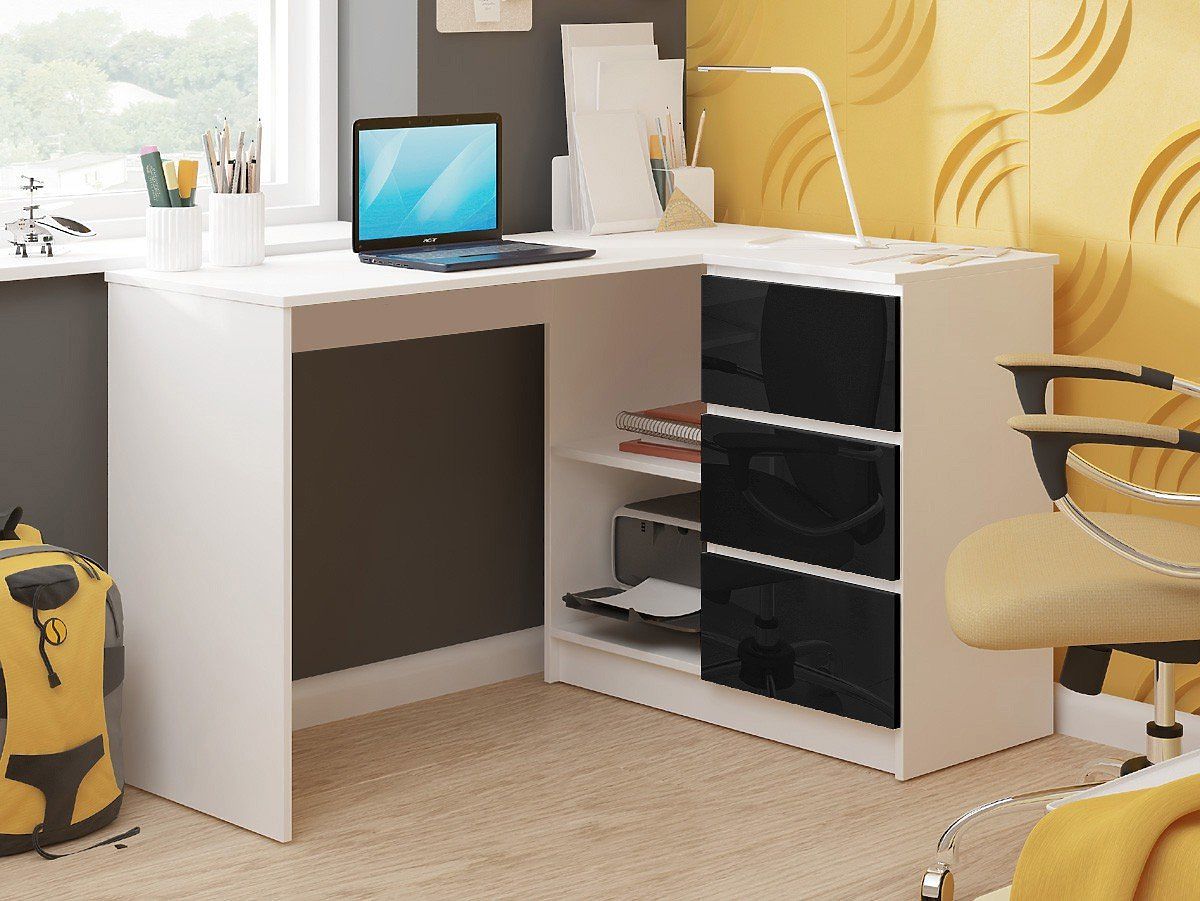 Lukahome.hu » Asztalok és asztalok / írás asztalok / SAROK ÍRÓASZTAL B16 124 cm JOBB 3 FIÓK FEHÉR / FEKETE FÉNYES