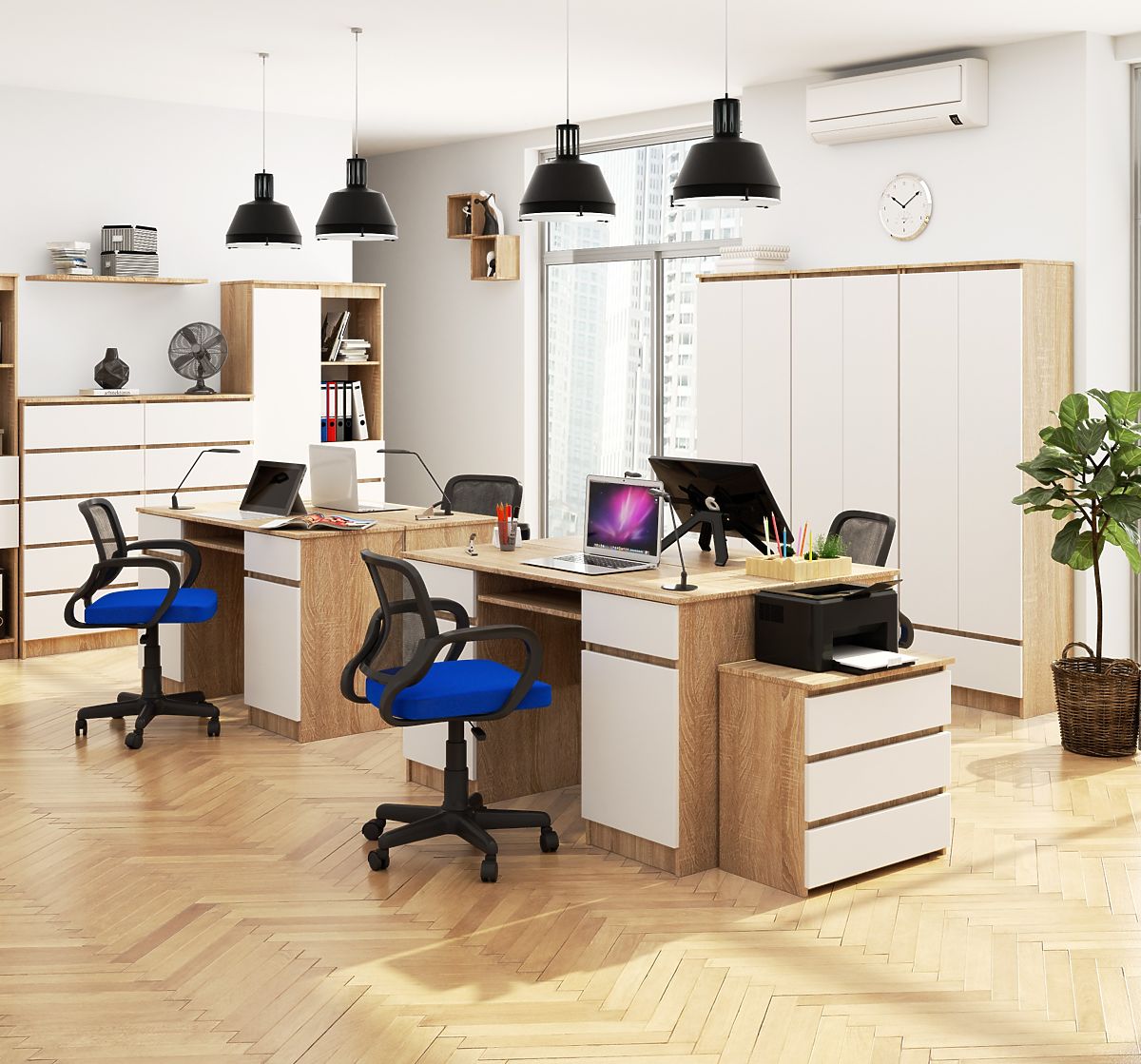 A 135 centiméter hosszú A5 számítógépasztal, amely két divatos színt (sonoma tölgy és fehér) kombinál, irodák, otthoni dolgozószobák, gyerek- vagy diákszobák berendezésére készült.