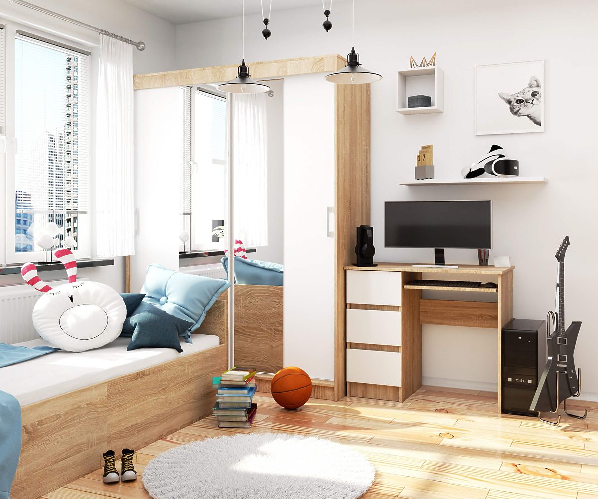 Kis és elegáns számítógépasztal A-6 tölgy sonoma színben, amely ideális választás a fiatalok és a modern belső terek kedvelői számára. Elegáns megjelenésű és megfelel a jelenlegi trendeknek. A bútor, amely szinte bármely, még a legkisebb helyiséghez is alkalmazkodik, hatékony munkavégzést biztosít. Az asztallap mérete 90 cm x 50 cm, elegendő helyet biztosít iskolai felszerelések, tankönyvek és laptop vagy számítógép számára.