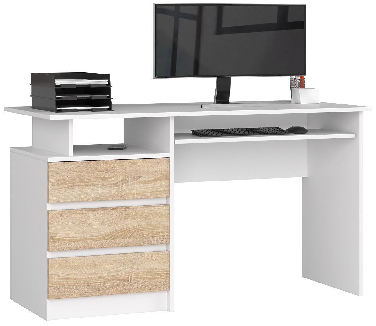 Fehér és sonoma színű, laminált íróasztal 135 cm hosszú. .. többet