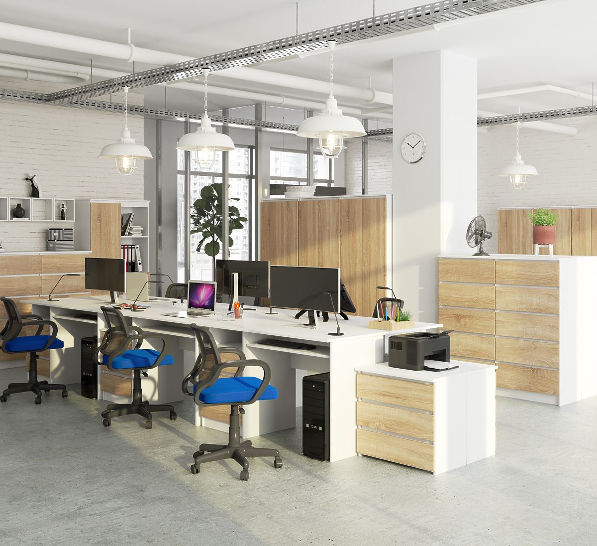 Íróasztal 16 mm vastag, kopásálló laminált lapból.