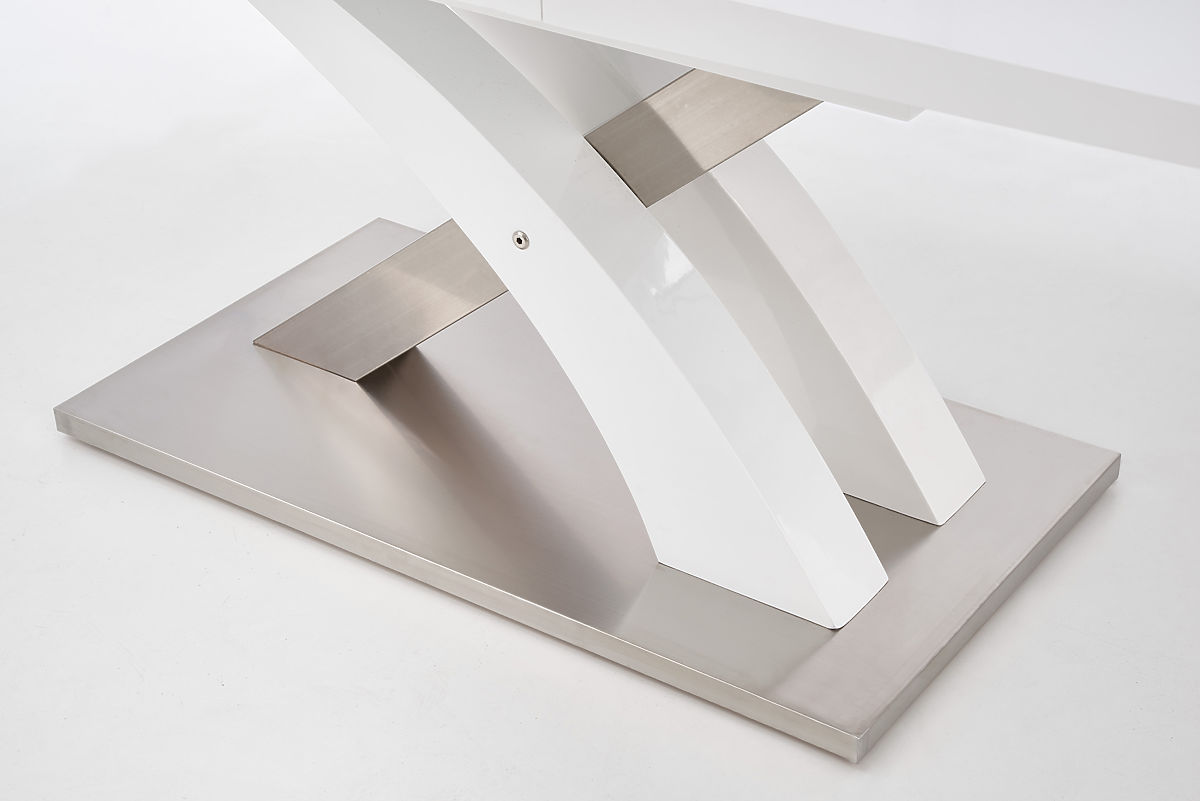 Fehér lakkozott kihúzható asztal MDF-ből és rozsdamentes acélból. .. többet