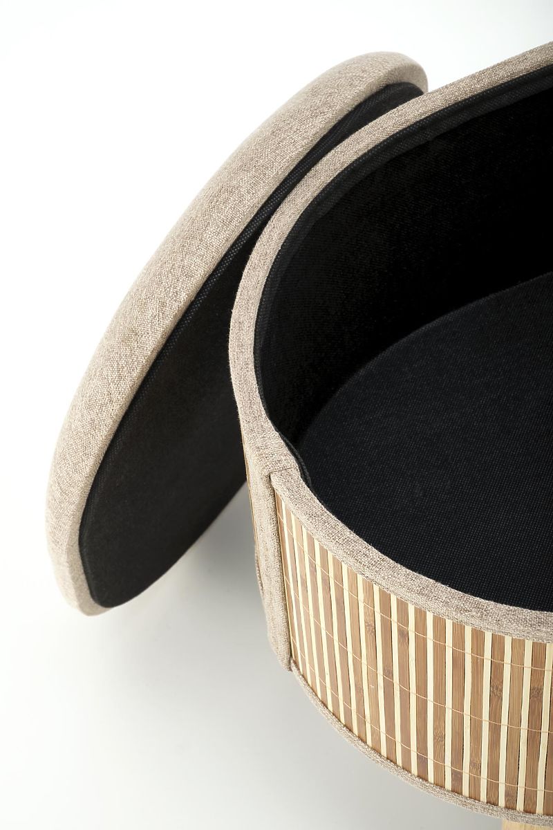 Két bézs puff tárolóhellyel és természetes fa szerkezettel. .. többet