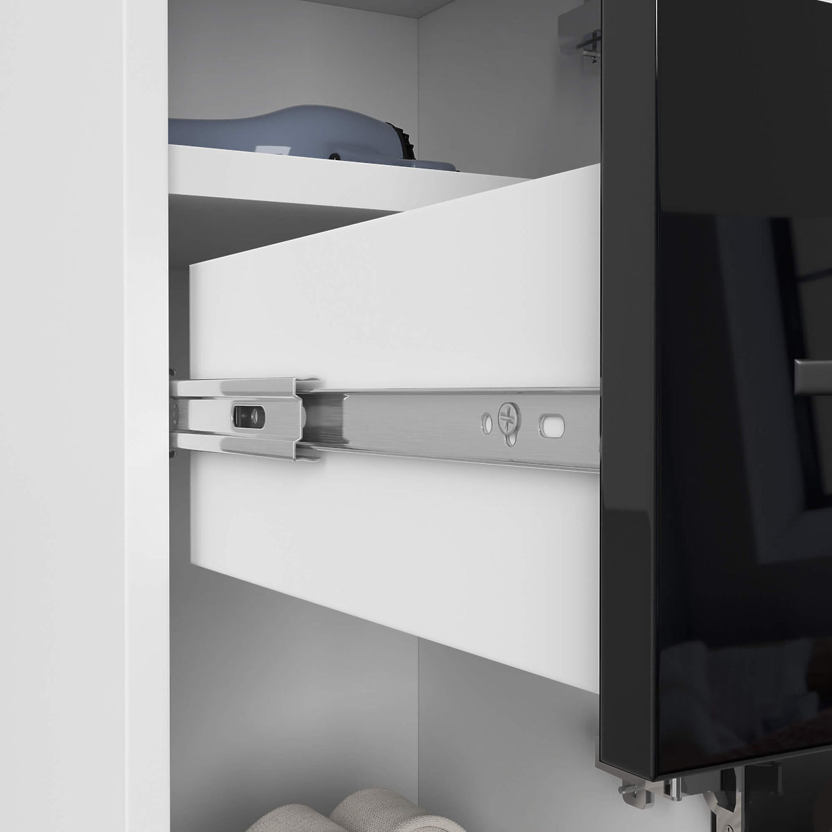 Fürdőszobai belső terekhez kínáljuk a szekrény-oszlopot, FIN 2D 1SZ fürdőszobai polcot (fehér/fekete fényes), amely: