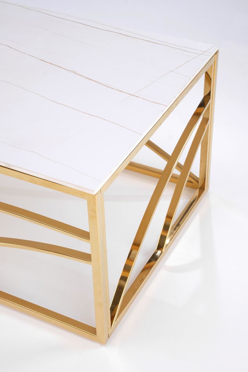 Fehér márvány és arany dohányzóasztal szinterezett kerámiából. .. többet