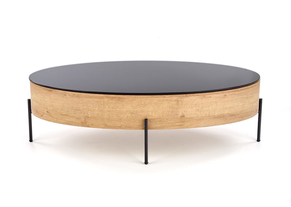 Ovális Zinga dohányzóasztal fekete üveggel és arany tölgy MDF-fel. .. többet