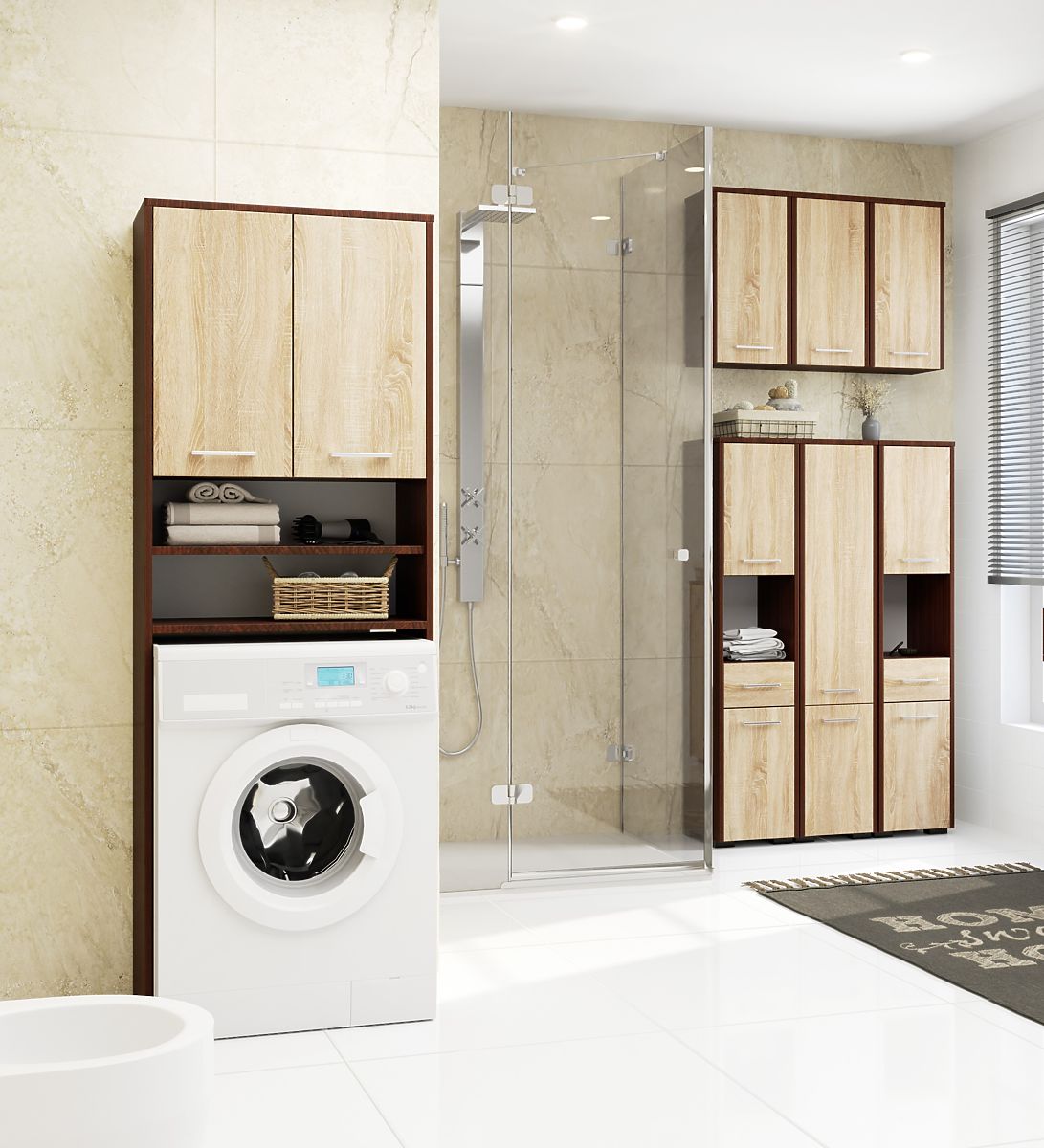 FIN FÜRDŐSZOBAI POLC 2 AJTÓVAL WENGE / SONOMA 16 mm vastag, kopásálló laminált lapból készült.