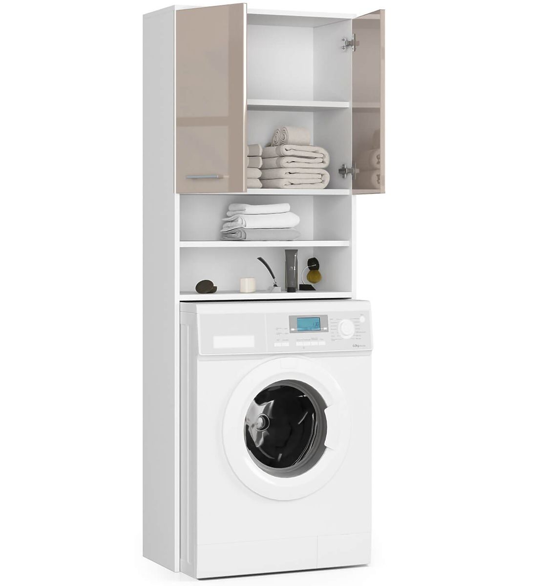 Fürdőszobai szekrény mosógép fölé, fehér és cappuccino fényes kivitelben. .. többet