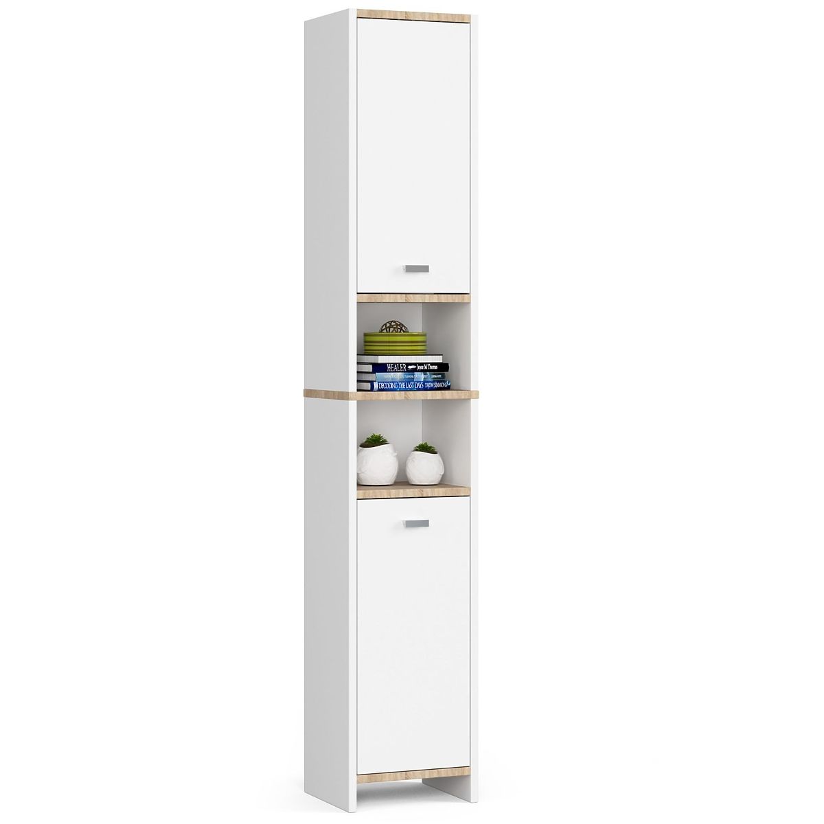 Kopásálló fehér fürdőszobai polc, 4 polccal és 2 ajtóval. .. többet