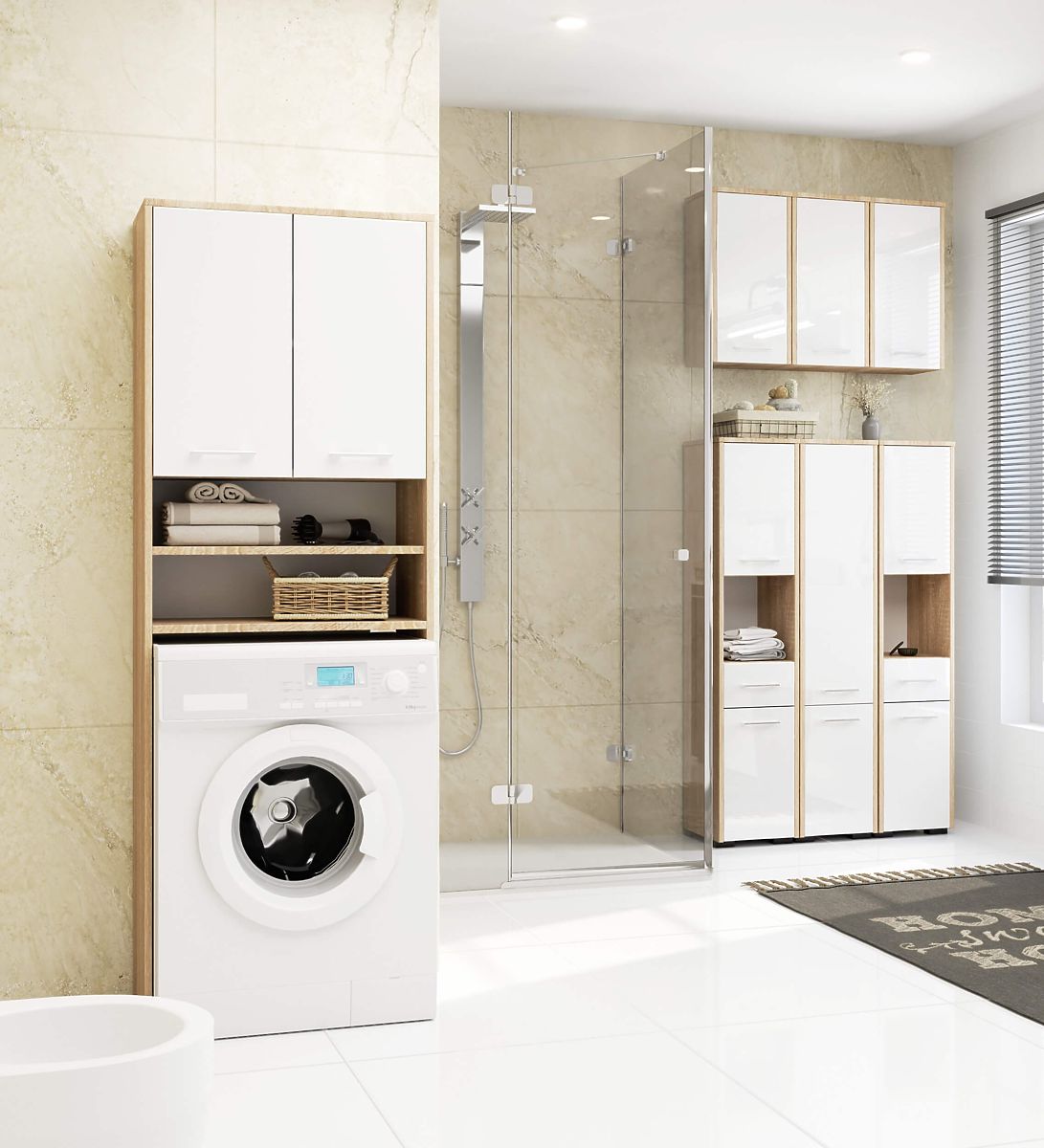 Lukahome.hu » Fürdőszoba és WC / Fürdőszobák szekrények / FÜRDŐSZOBAI POLC MOSÓGÉP FÖLÉ SONOMA TÖLGY / FEHÉR FÉNYES