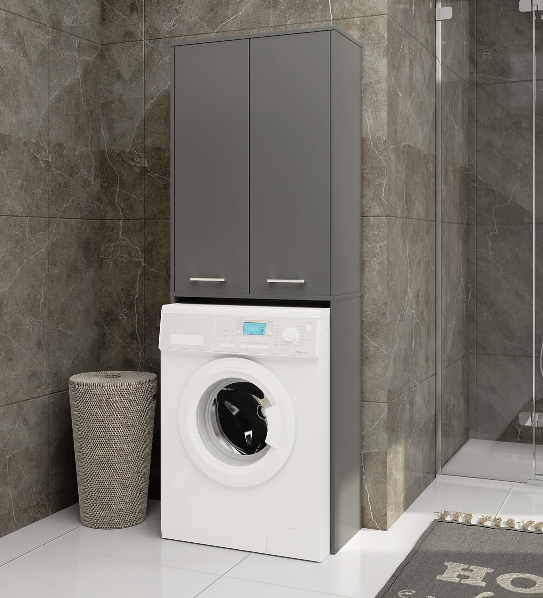 Ha azt szeretnénk, hogy fürdőszobánk kényelmesen és stílusosan legyen berendezve, érdemes szilárdan és funkcionálisan készült bútorokat választani. Ilyen biztosan a mosógép fölé helyezhető szekrény. Ez egy ideális módja annak, hogy kihasználjuk a mosógép fölötti teret, amely általában kihasználatlan marad. Ennek az oszlopnak az optimális méretei azt is jelentik, hogy kiváló megoldás kis alapterületű fürdőszobákba. Ergonomikus formája lehetővé teszi, hogy bármely helyiségben használható legyen. Ez a bútor, amely a mosógép fölé helyezett toldalékból és a fölötte lévő szekrényből áll, nagy mennyiségű tárolóhelyet biztosít különféle tárgyak számára. A szekrénybe például tisztítószereket vagy higiéniai termékeket tehetünk. Ezek a polcok személyes kozmetikumok vagy törölközők tárolására készültek. A grafit szürke gyönyörű árnyalata elegáns megjelenést biztosít a fürdőszobának. A szekrény anyaga, a laminált lap, kiváló minőségű anyag, amely biztosítja a bútor tartósságát és szilárdságát, valamint esztétikai megjelenésének megőrzését.