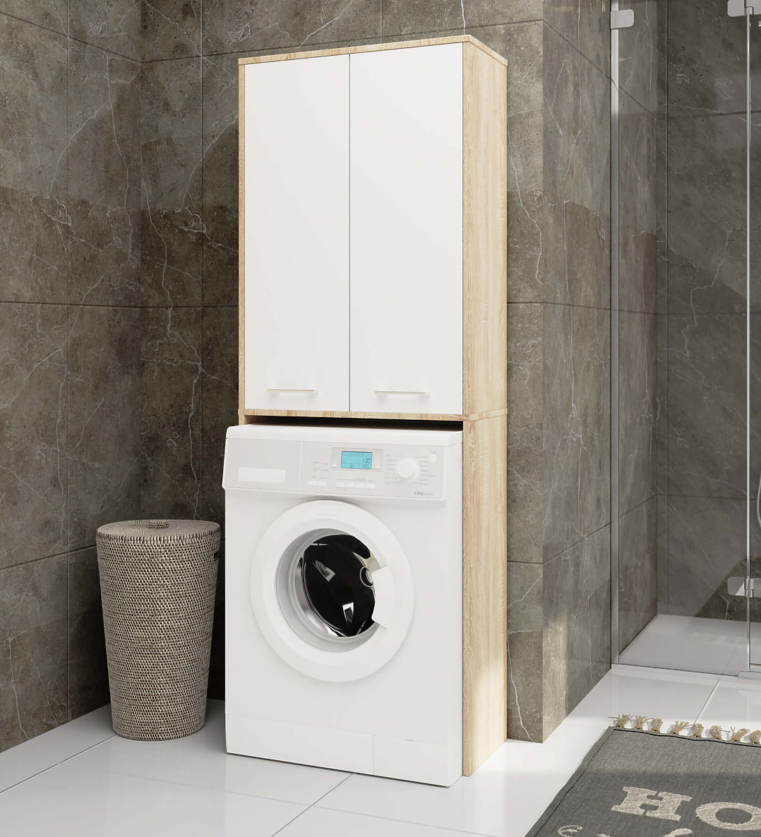Mosógép fölé helyezhető szekrény Sonoma tölgy és fehér színben. .. többet