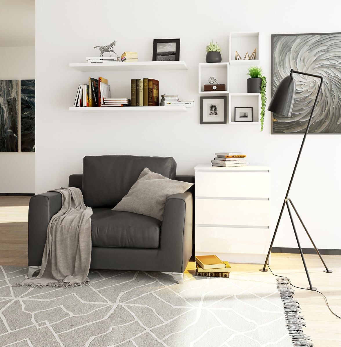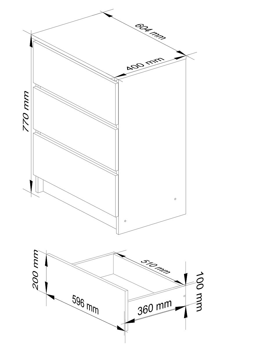 KOMÓD K60 3 FIÓK FEHÉR AKRIL FÉNYES Kiváló minőségű, 16 mm vastag laminált lapból készült, kopásálló.