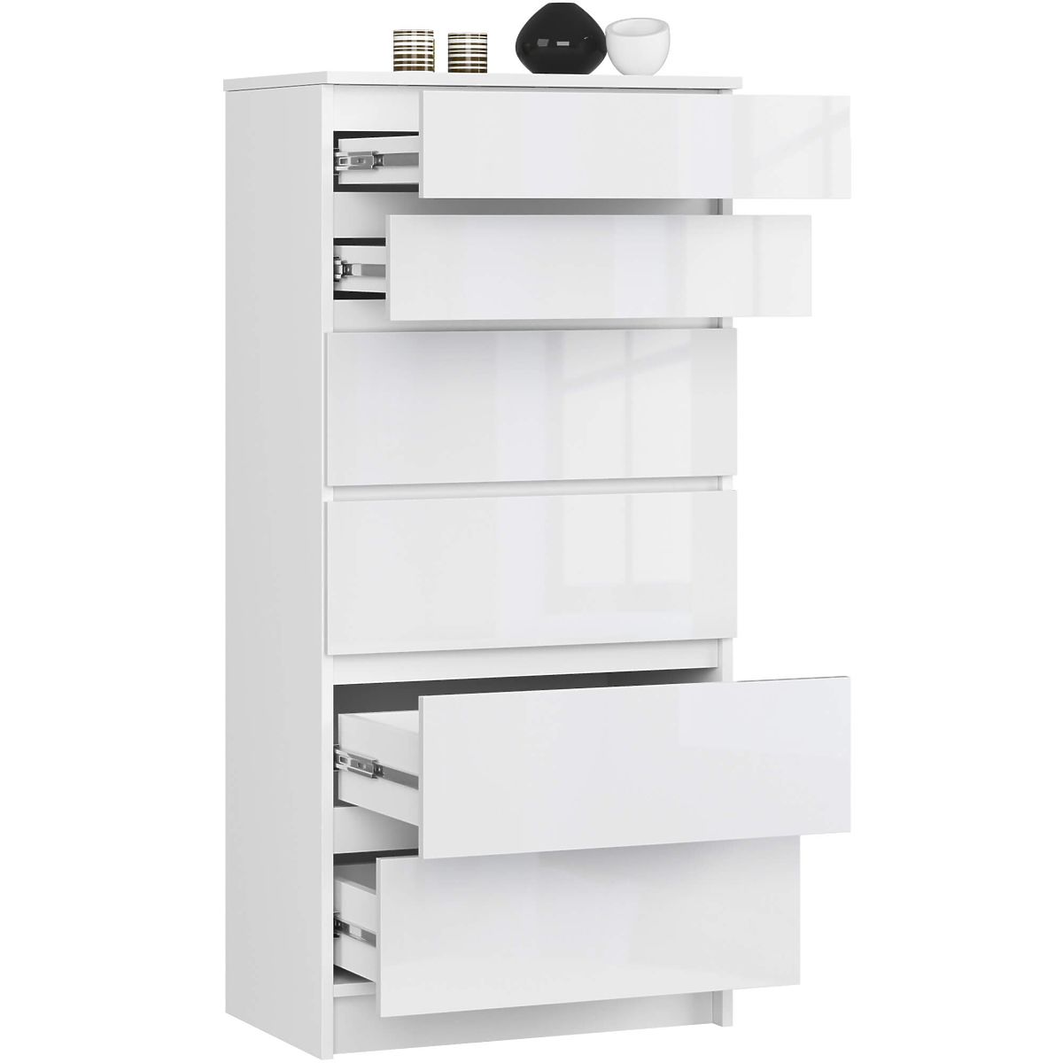 Fehér fényes komód 6 fiókkal és ABS élzárással. .. többet
