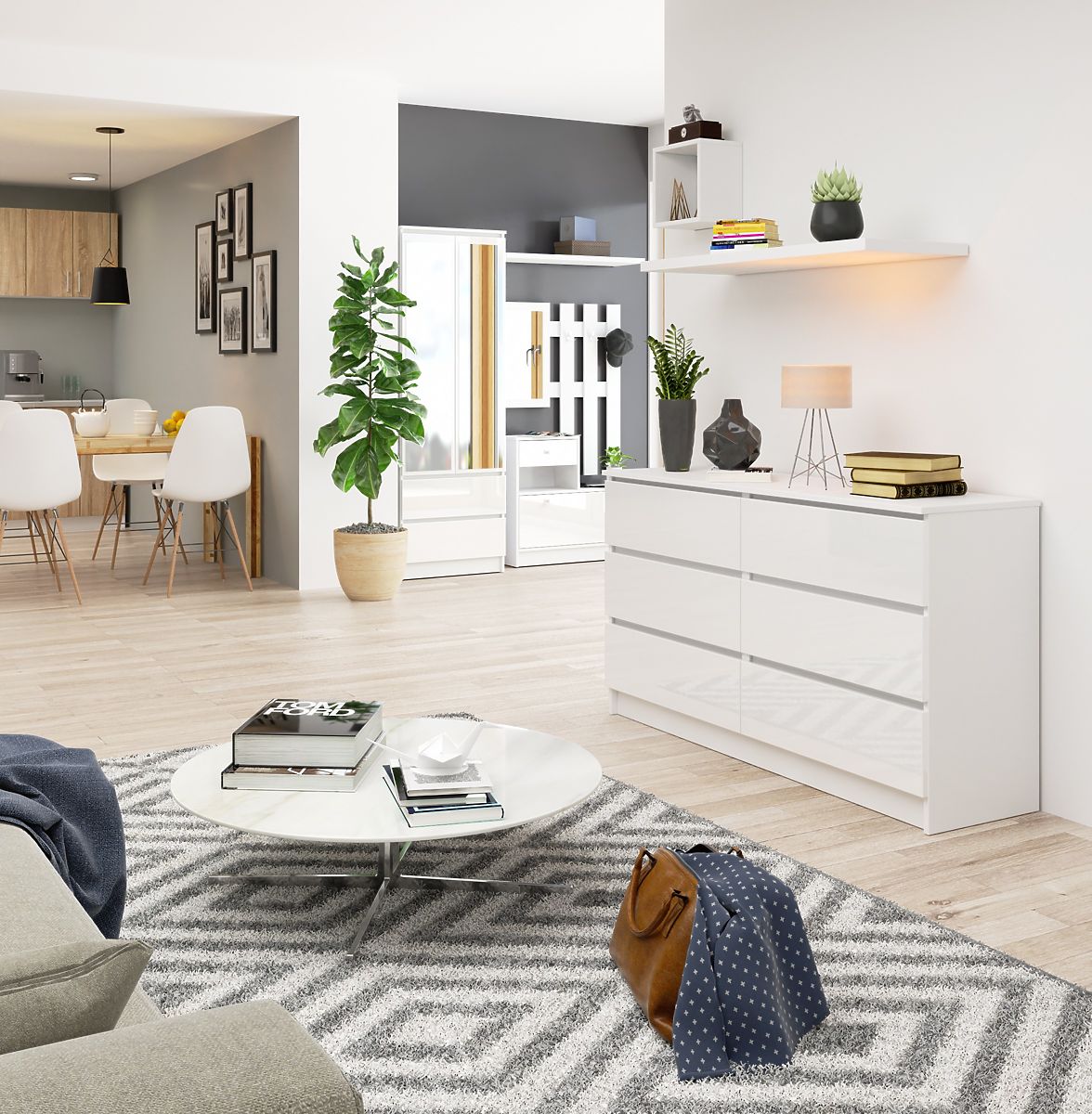 Fehér magasfényű komód 6 fiókkal, 138x77x40 cm méretben. .. többet