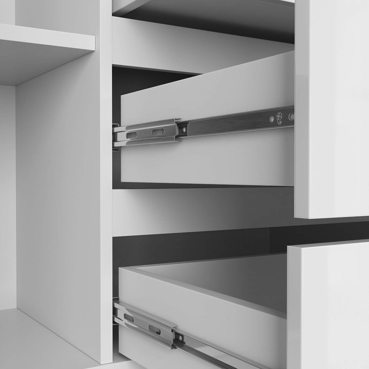- A fiókok fém golyóscsapágyas síneken mozognak - Az élek ABS éllel vannak ellátva, amely magas fokú védelmet biztosít a sérülések ellen