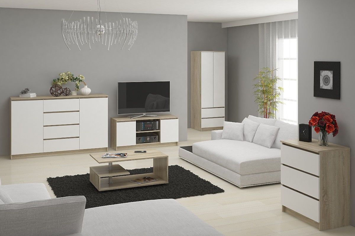 Elegáns, stílusos és modern. E három jelzővel írható le komódunk. Időtálló színekben készült. A korpusz sonoma színű, míg a fiókok előlapjai fehérek. Az általunk kínált modell hossza 120 centiméter, magassága 77 centiméter, mélysége pedig 40 centiméter. Ez utóbbi méret teszi bútorunkat olyan tágassá. Természetesen a különféle kiegészítők, ruhák és cipők tárolására szolgáló hat fiók is szerepet játszik. Az említett fiókok finoman és pontosan mozognak, mindez a fémgolyós síneknek köszönhetően.