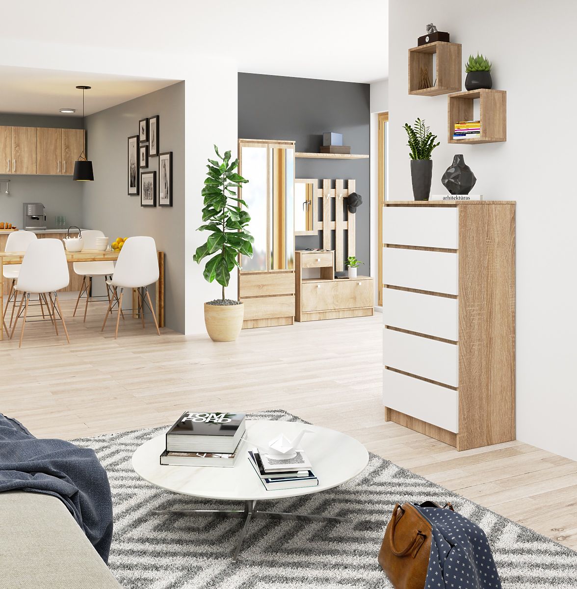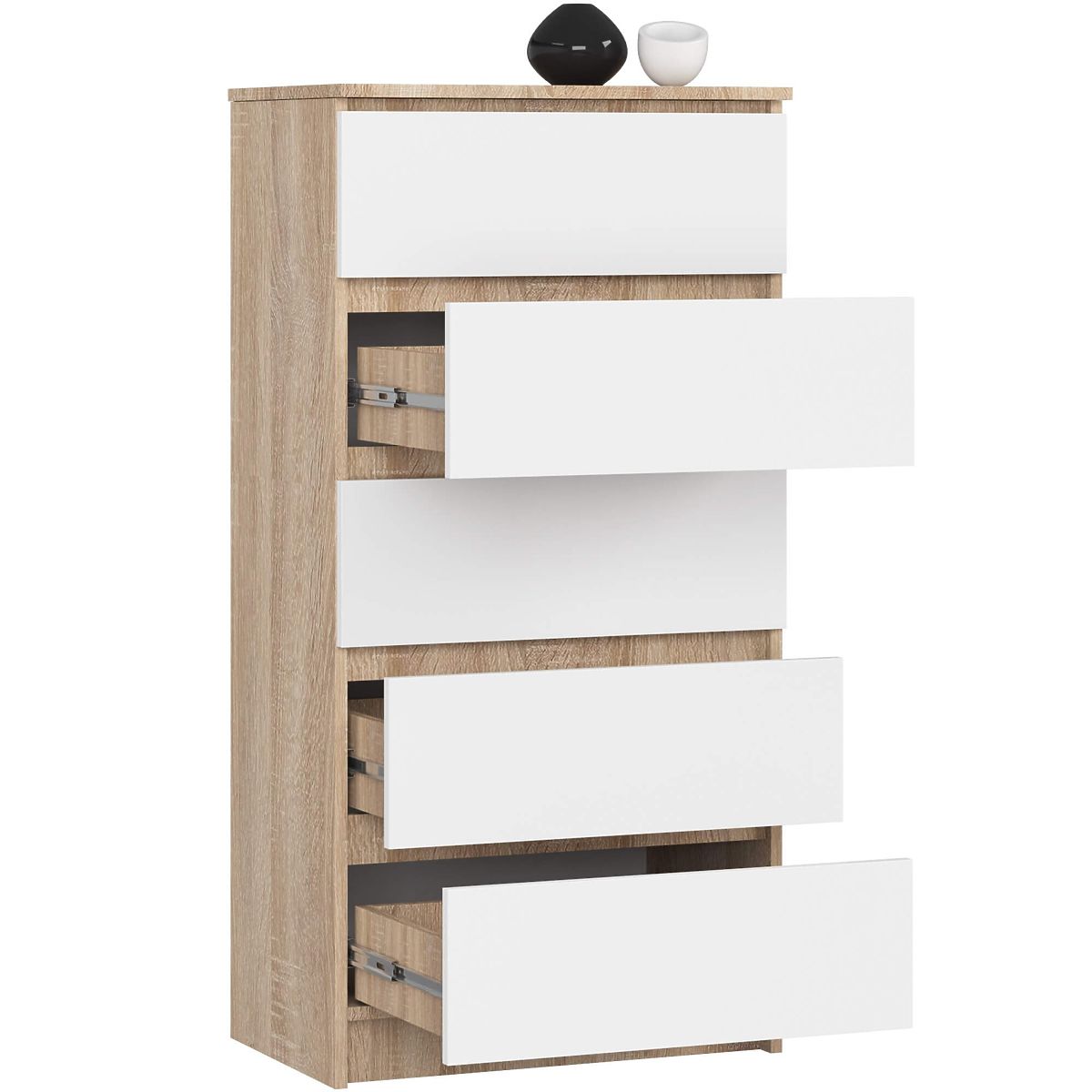 5 fiókos komód Sonoma Tölgy és Fehér színben. .. többet