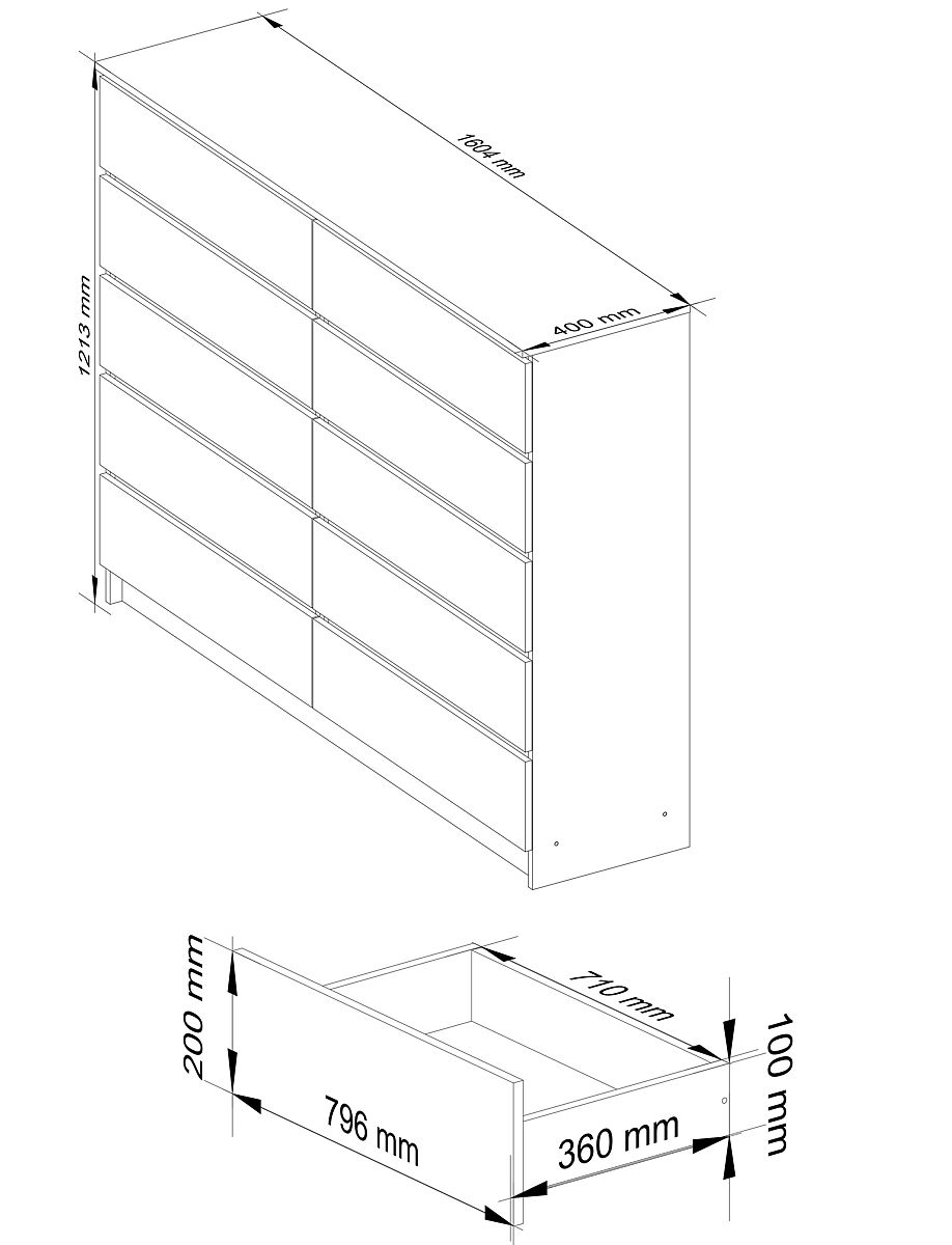 A tölgy sonoma színű K60 komód ideális választás minden internetes áruházunk vásárlójának, akik nagy méretű bútorokat keresnek különféle szükséges tárgyak tárolására a helyiségben. Az általunk bemutatott komód, amelynek jellemzői az univerzális, időtálló design és kiváló minőség, tíz fiókkal van felszerelve. Mindennapi használat során problémamentes és könnyen karbantartható, ez a választás biztosan kielégíti azokat a vásárlókat, akik modern, egyszerű, de elegáns megoldásokat keresnek. A komód használható többek között nappalikban vagy hálószobákban, de akár szállodai szobákban vagy irodai helyiségekben is. Figyelemre méltó a versenyképes ára is ennek a szilárdan megmunkált terméknek.