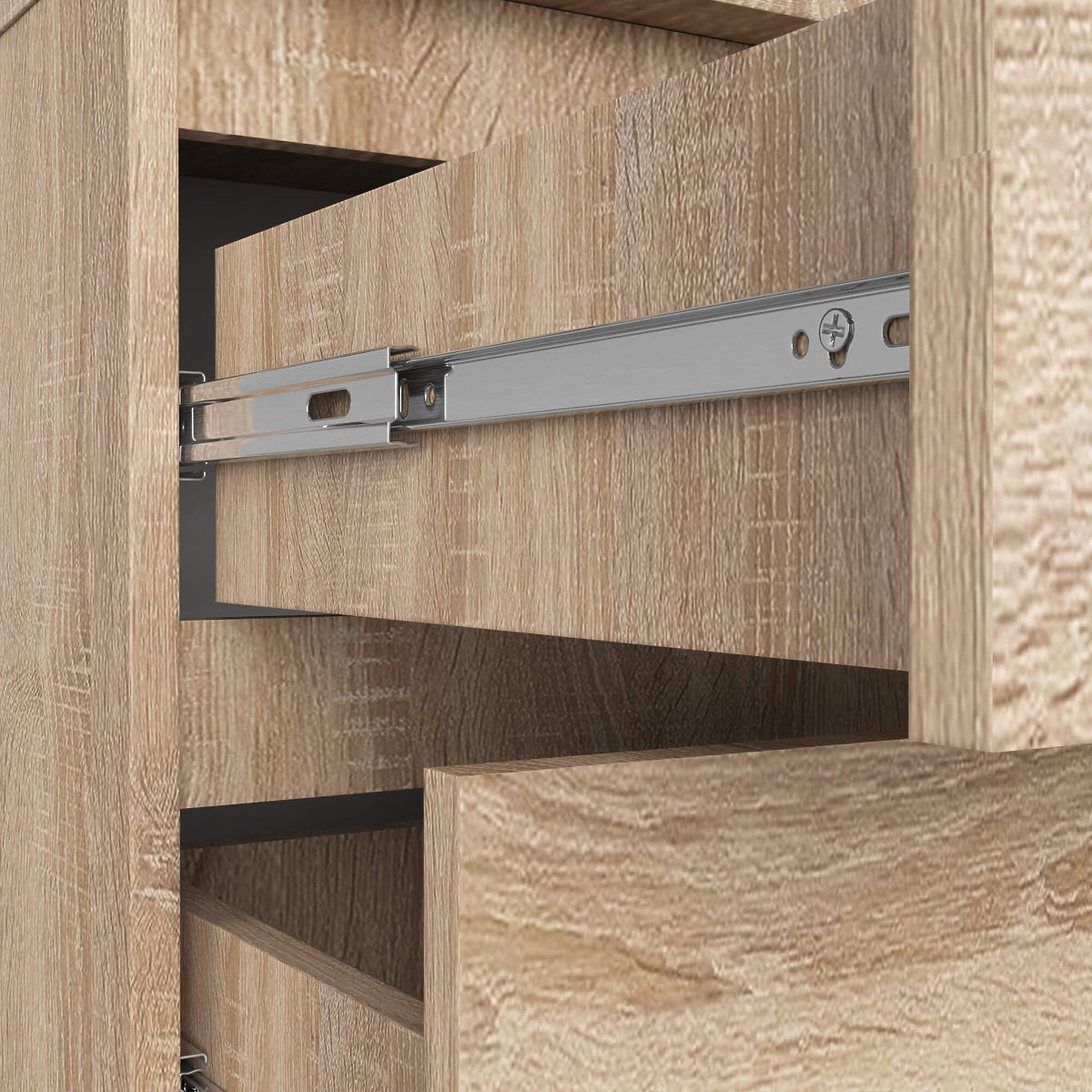 Kicsi, de tágas komód három fiókkal, amelynek felülete megfelel az igényes vásárlók elvárásainak. Sonoma tölgy színben készült, amely tökéletesen illik a világos belső terekhez. A termék alkalmas hálószobába, nappaliba, szobába vagy előszobába - minden a vásárlóink igényeitől függ. 16 milliméter vastag laminált lapból készült darabot kínálunk. Ez egy kopásálló anyag, amelyet tovább erősít az ABS élzárás. A modell fiókjai fém golyós csúszkákon mozognak, ami sima, finom és pontos működést biztosít.