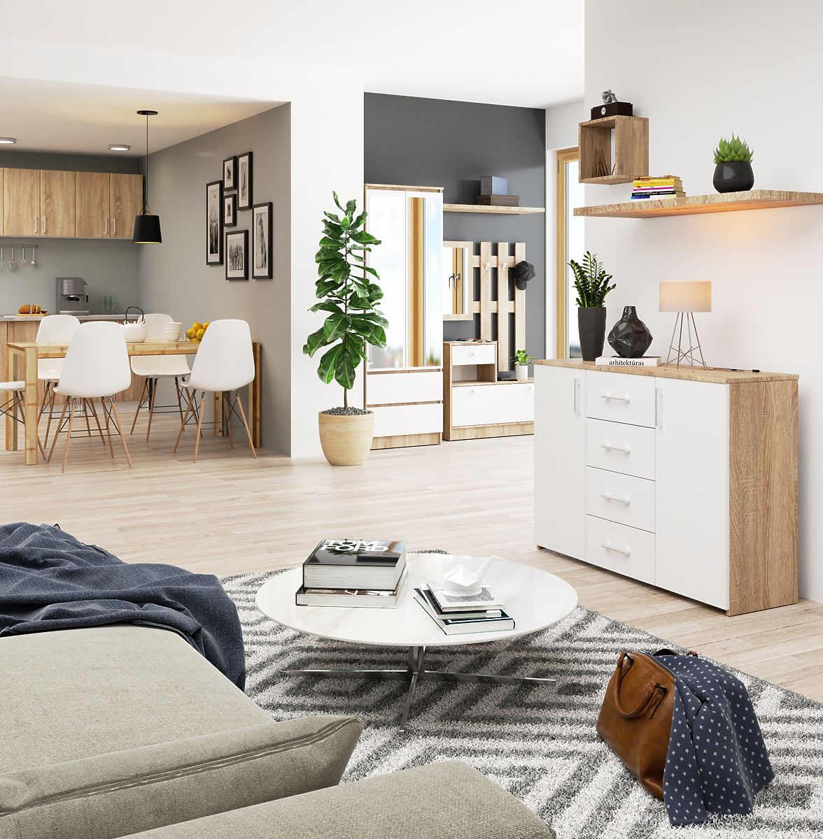 A K 45-ös modellű komód kiváló választ ad a mai felhasználók igényeire. Matt fehér színben, látványos artisan tölgy kiegészítéssel készült, amely a természetet és eleganciát tükrözi. Ez a különleges megoldás széles körű elrendezési lehetőségeket kínál a felhasználóknak, amelyet csak a képzelet korlátozhat.