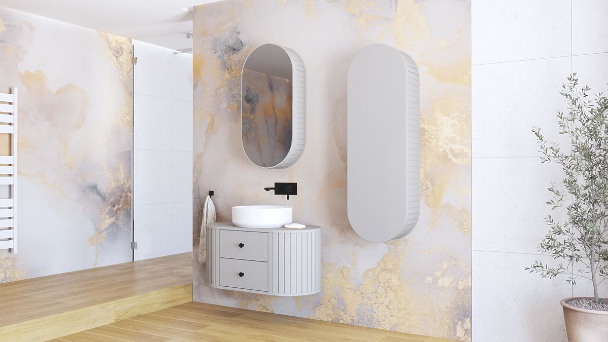 Tükörszekrény kasmír színben, soft close rendszerrel. .. többet