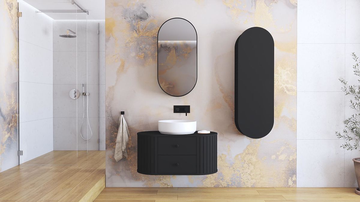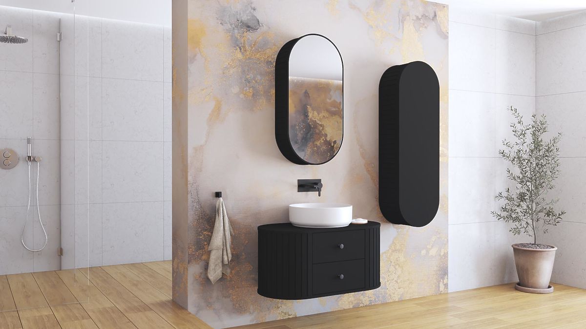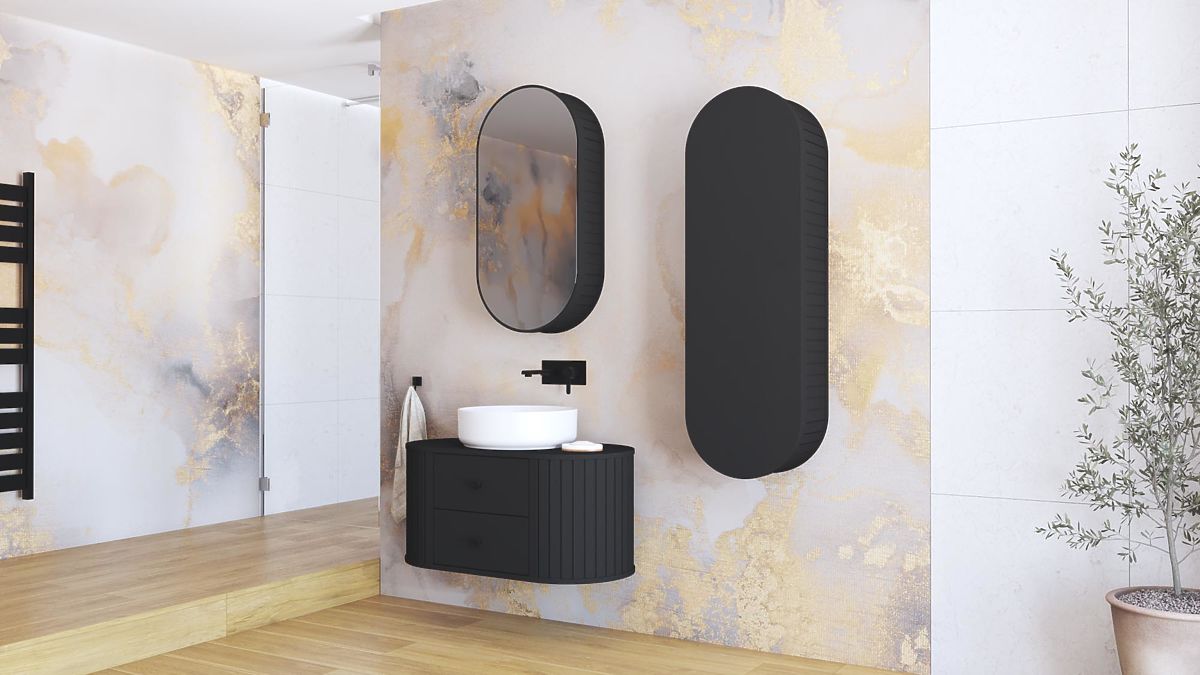Tükrös szekrény matt fekete színben, push to open rendszerrel. .. többet